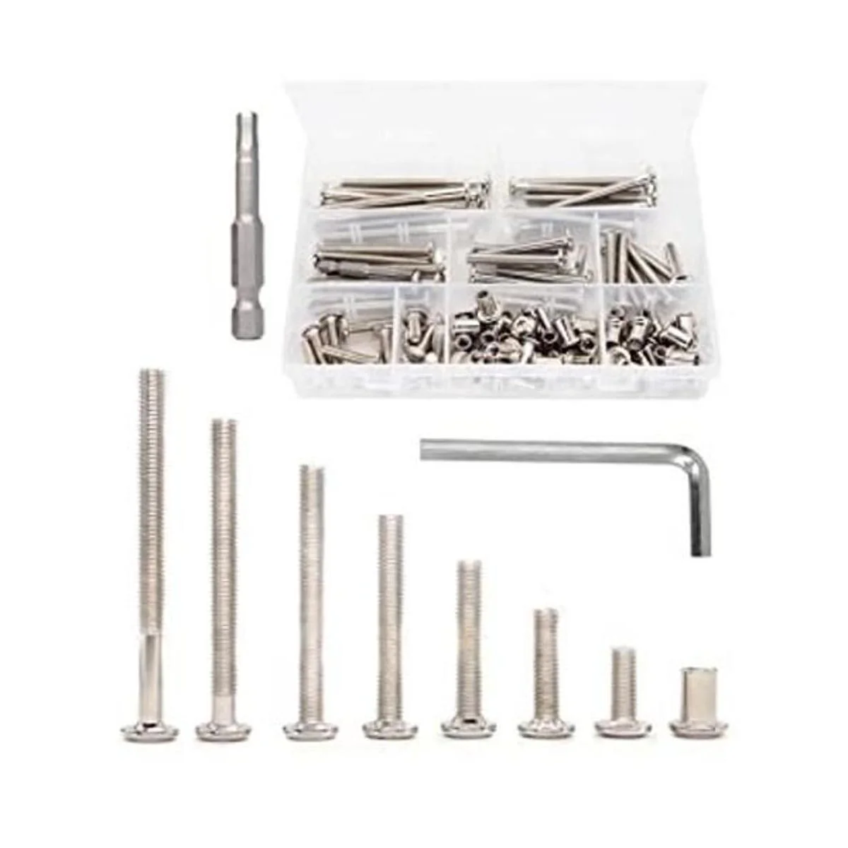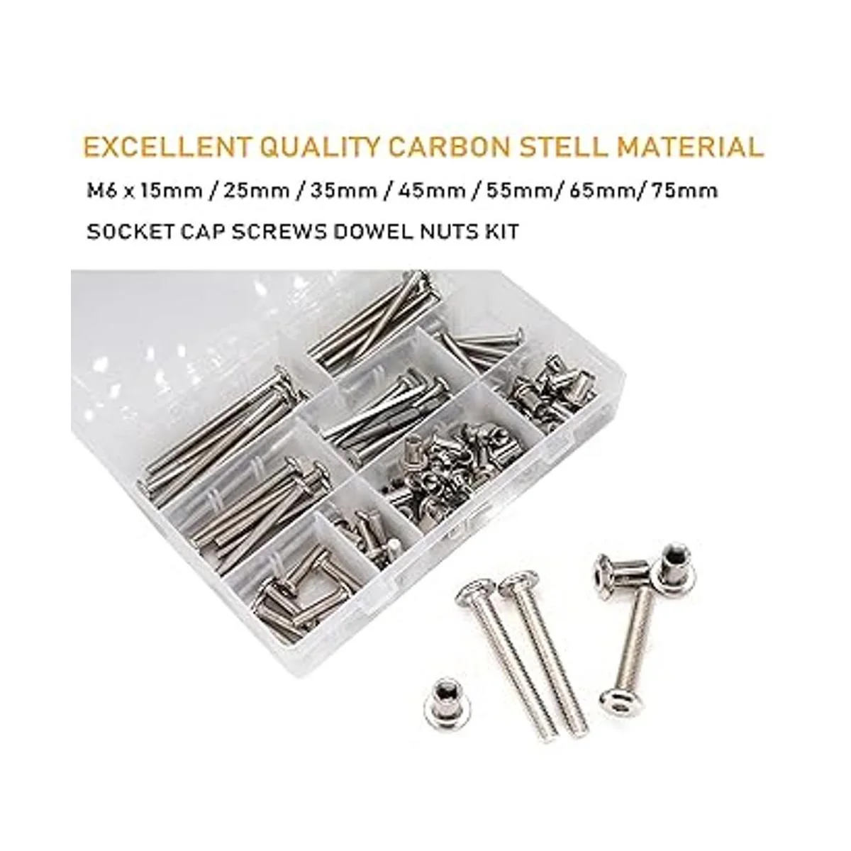 binifiMux 100 piezas M6x15mm, 0.984 in, 1.378 in, 1.772 in, 2.165 in, 2.559 in, 2.953 in, kit surtido de pernos hexagonales avellanados y tuercas de barril, juego de pernos de conector de muebles y tuercas de barril, chapado en níquel