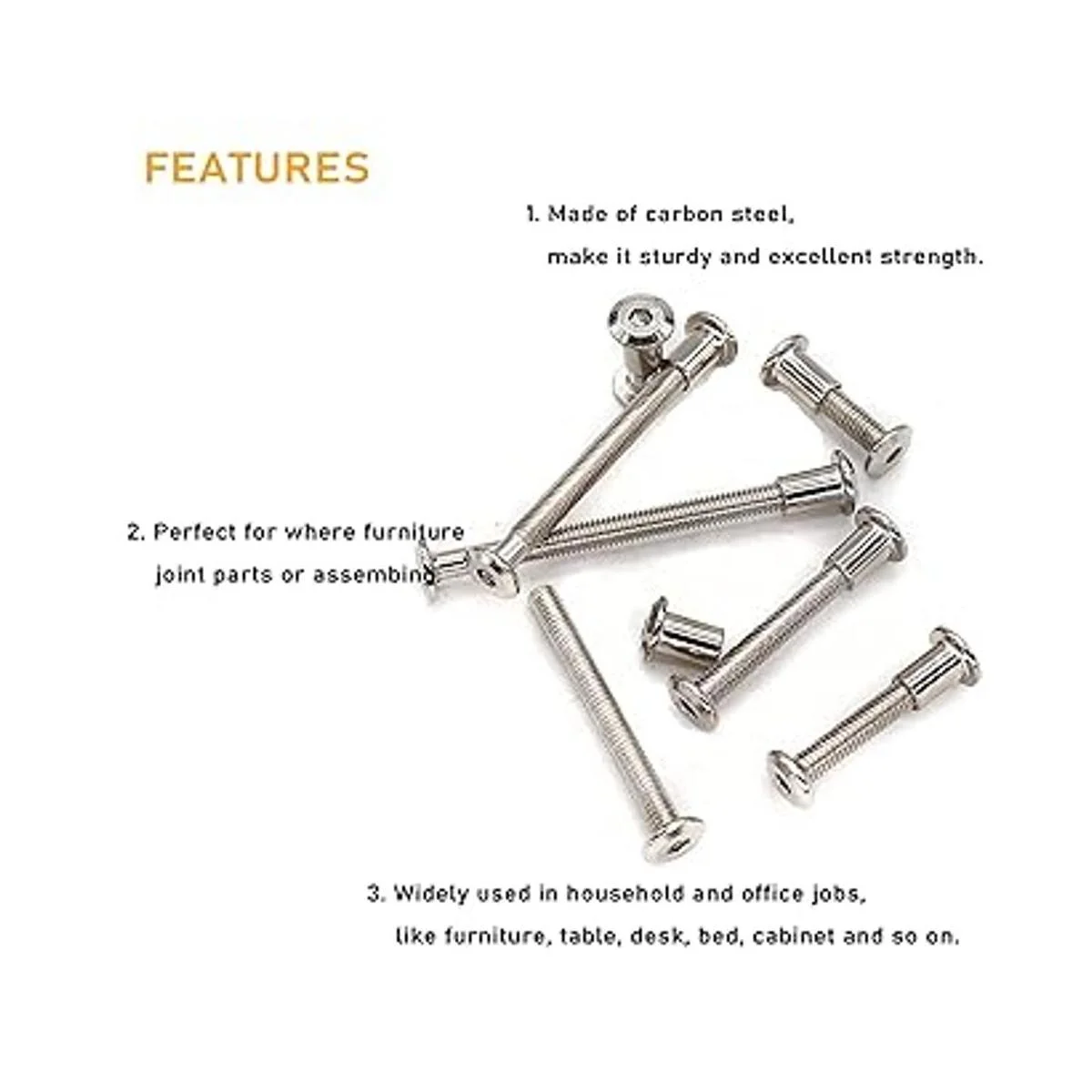 Paso: 0.039 in. Color: chapado en níquel plateado; Paquete: en total 98 piezas M6 de cabeza plana Allen pernos de conexión tornillos de casquillo y tuercas de tapa de remache más una llave hexagonal y broca hexagonal;