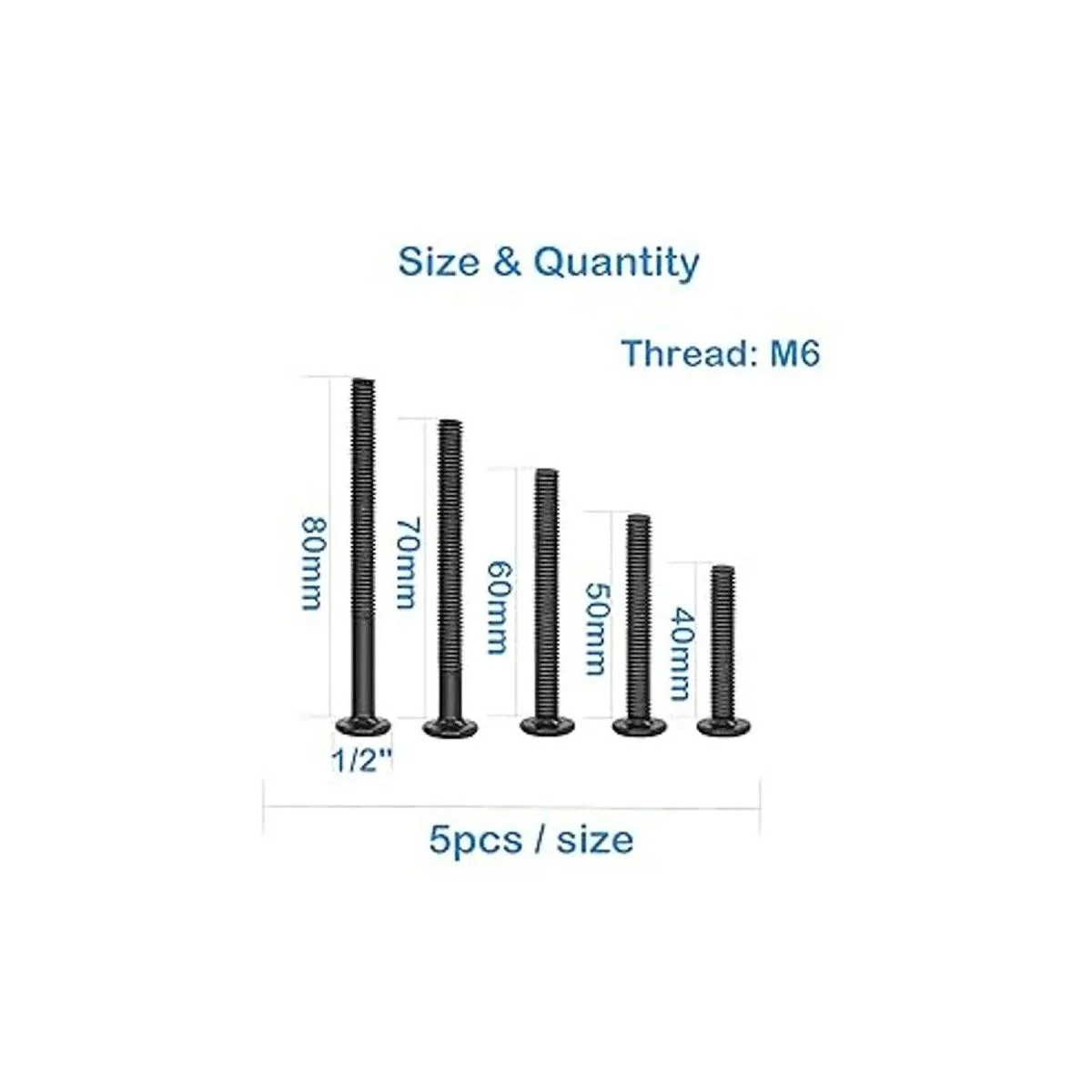 binifiMux Kit surtido de 50 pernos de casquillo hexagonales negros para cuna, cama de bebé, cuna, cuna, cuna, cuna, 0.236 x 1.575 in, 1.969 in, 2.362 in, 2.756 in, 3.150 in