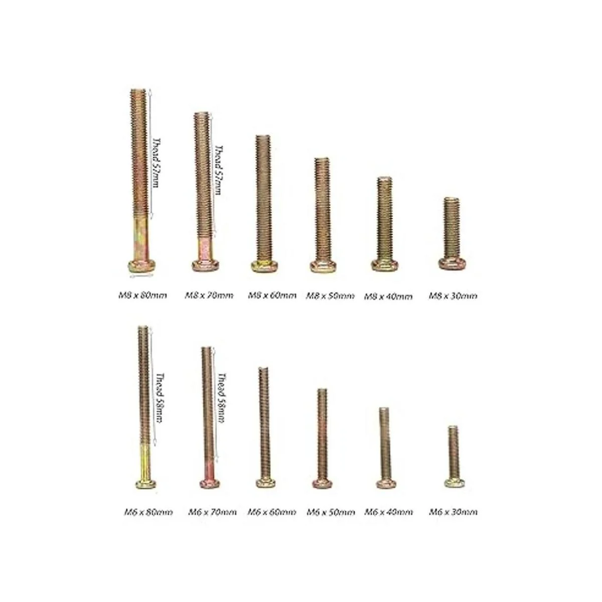binifiMux Tornillos para cuna 100 unidades, M6, M8 x 1.181 in, 1.575 in, 1.969 in, 2.362 in, 2.756 in, 3.150 in, tornillos hexagonales, tuercas de barril surtidas, para cuna, cama, sillas, cunas, cunas, bañados en zinc