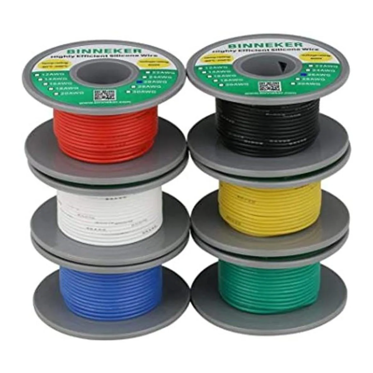 Kit de alambre de silicona de calibre 26: 6 colores, rojo, negro, blanco, azul, verde, amarillo, cada color 32.8 ft, total 196.9 ft.