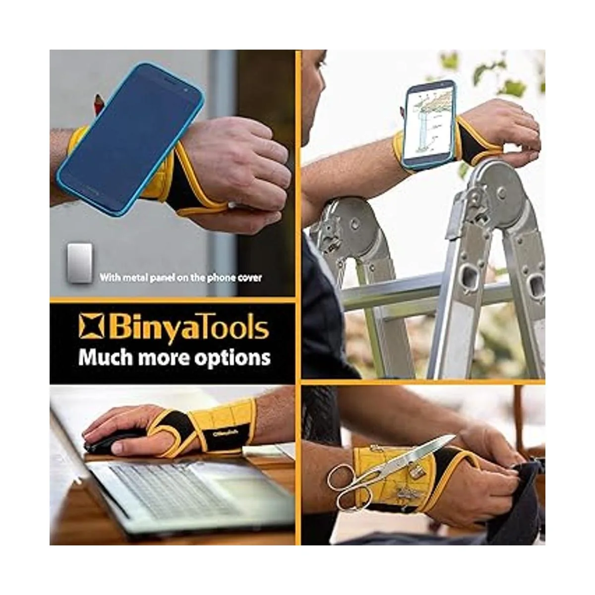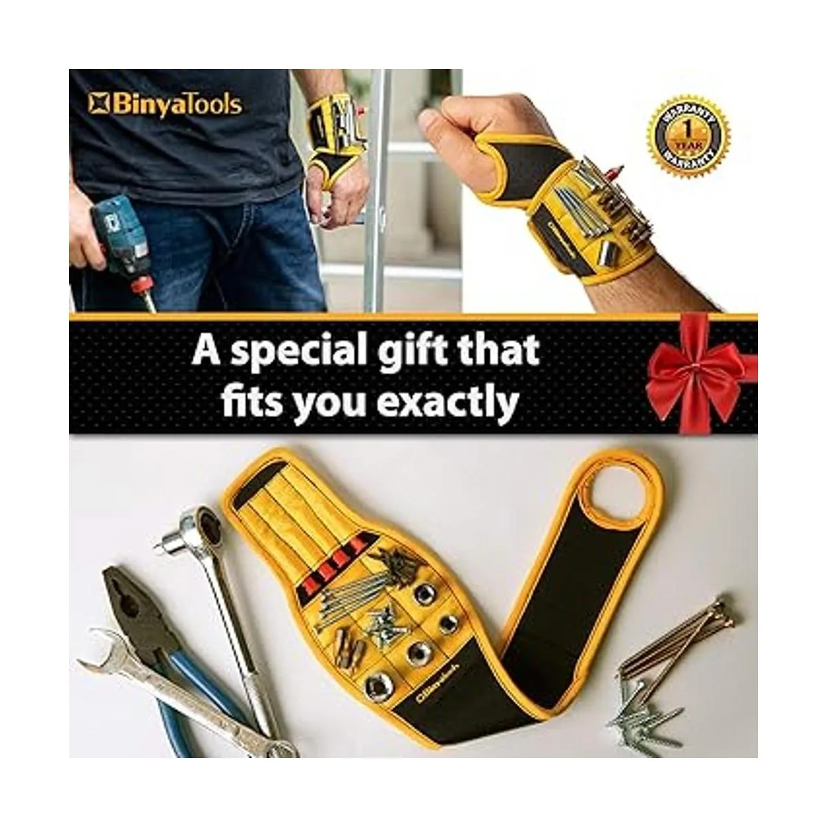 BINYATOOLS Pulsera magnética con imanes súper fuertes que sostiene tornillos, clavos, broca. Diseño único de soporte de muñeca, regalo práctico para padres, novios, manitas, electricista, contratista