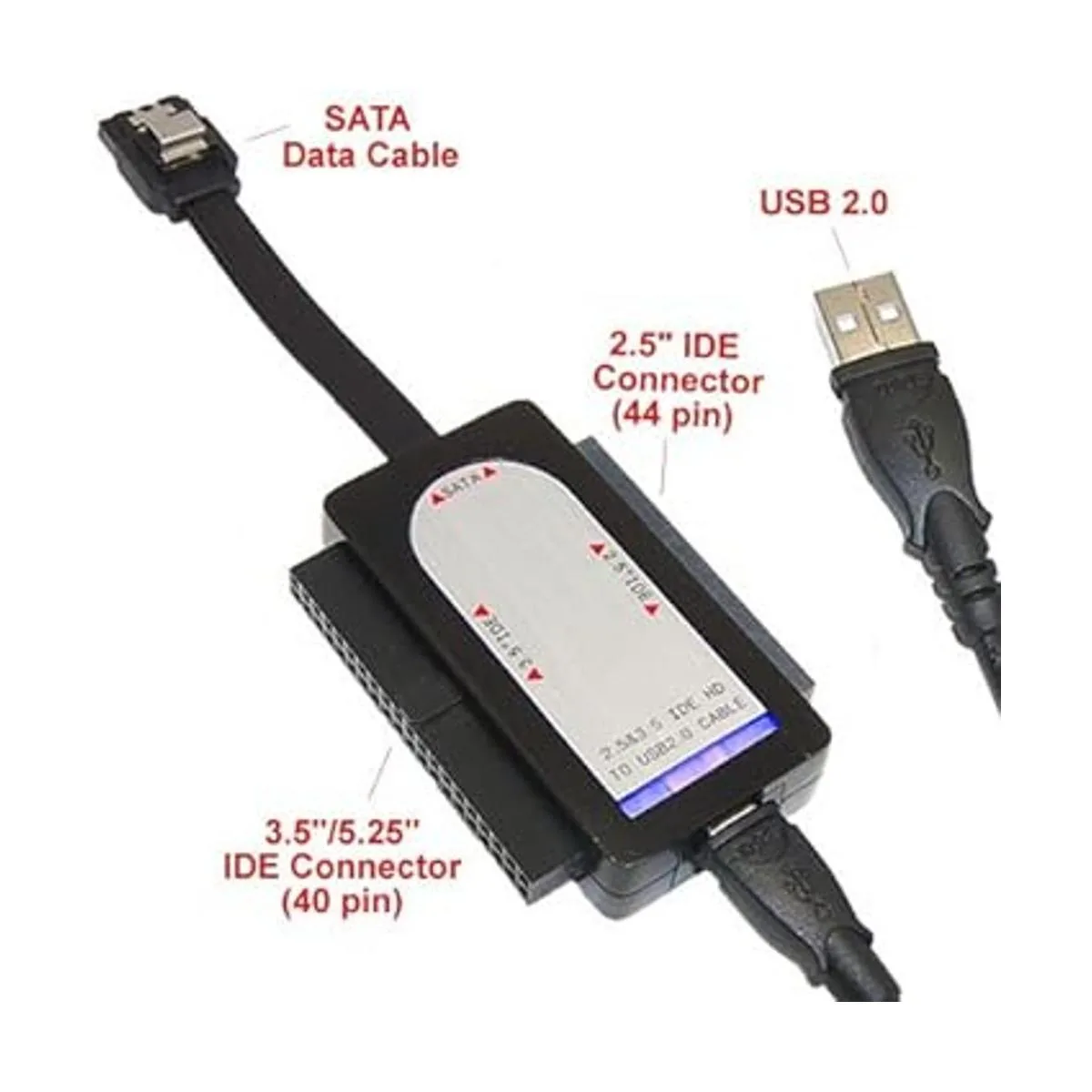Bipra Disco duro Kit de adaptador USB 2.0 a SATAIDE con Adaptador de alimentación SATA para 2,53,55.25 inch o IDE Drive