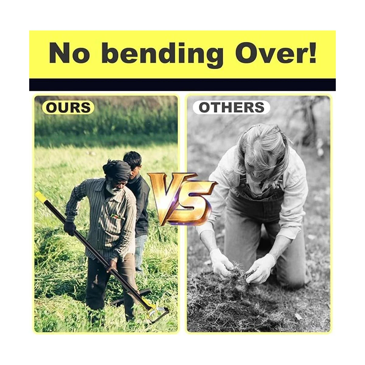 Mango resistente pero ligero: fabricado con acero inoxidable grueso de 1.3 pulgadas de diámetro que es más resistente para asegurarte de que puedes utilizar esta azada de malas hierbas durante décadas, y su diseño hueco hace que este mango sea más ligero para garantizar que deshierbas durante mucho tiempo sin sentirte fatigado