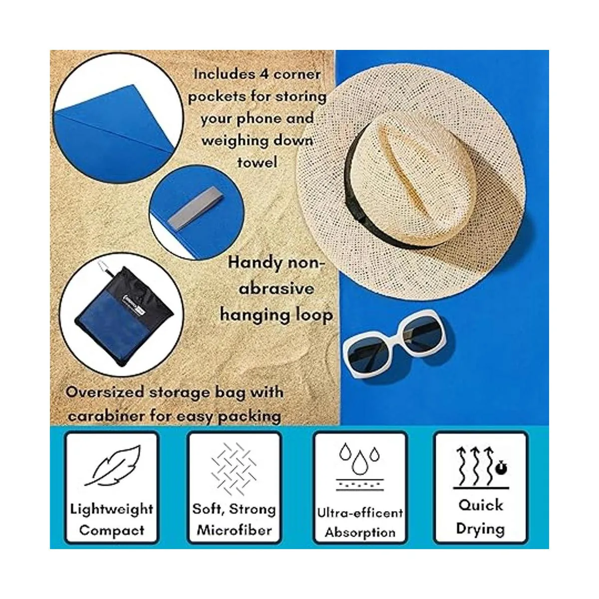Toalla de playa sin arena: la tela de microfibra premium cuenta con un tacto suave y lujoso mientras que contiene fibras fuertes y entrelazadas que hacen que la toalla sea resistente y resistente a la arena.