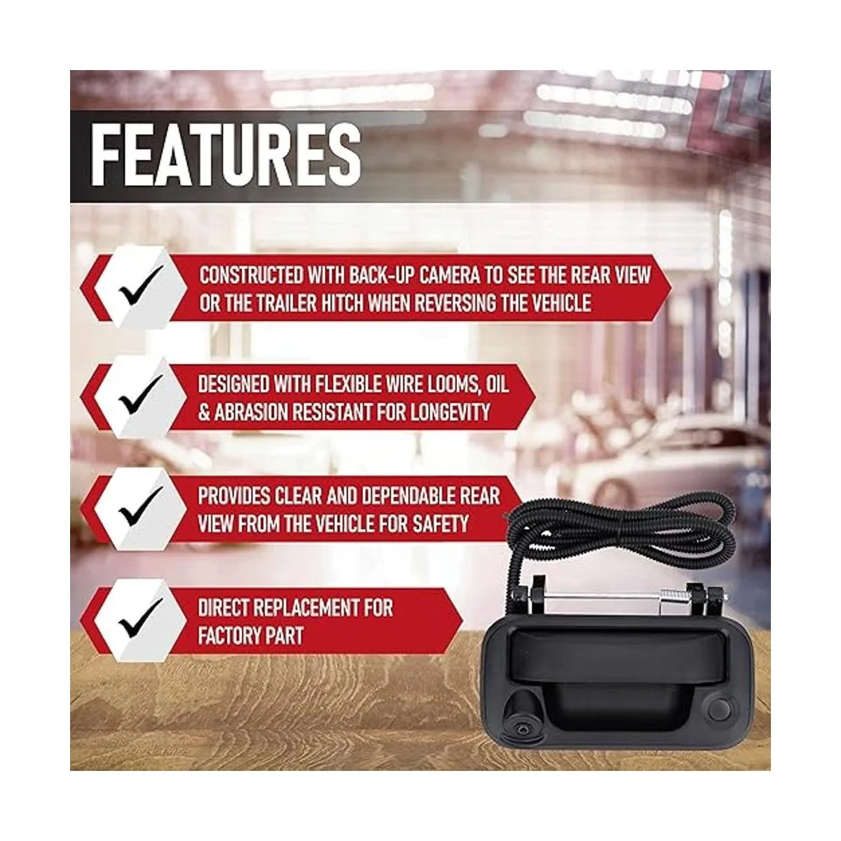 Bisel de repuesto para puerta trasera de coche, con cámara de visión trasera de respaldo, compatible con vehículos Ford, 20042014, F150, 20082016, F250, F350, F450, F550, Super Duty Manija de puerta trasera negra