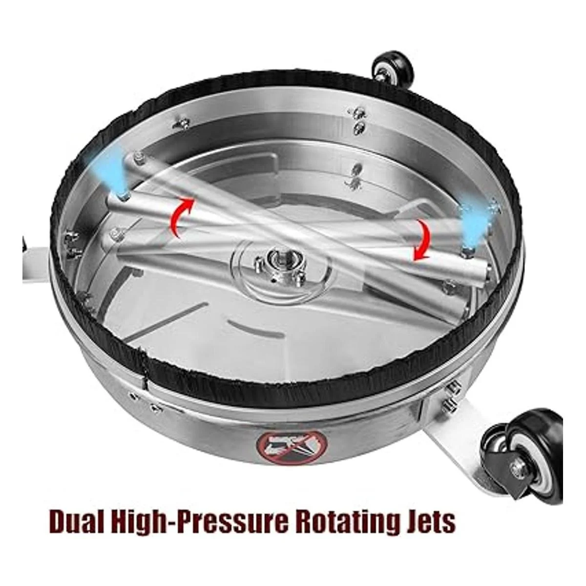 Alta eficiencia: los limpiadores de superficies para limpiadores de presión de gas y eléctricos pueden reducir el tiempo de limpieza hasta en un 60 en comparación con las boquillas convencionales. El limpiador de superficies de 15 pulgadas tiene chorros de agua de doble presión que giran rápidamente rompiendo la suciedad y la mugre sin rayar ni rayar las superficies. Y limpia superficies grandes hasta 5 veces más rápido que una boquilla estándar.