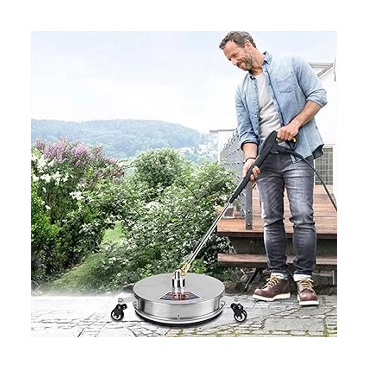 Limpiador profesional de superficies: el limpiador de superficies de lavadora a presión de 15 pulgadas proporciona un área de limpieza de grado comercial de 15 pulgadas de ancho. La acción de desplazamiento hace que la superficie esté limpia más rápida y eficaz que las boquillas solas. Ideal para limpiar manchas difíciles en grandes superficies planas como patios, calzadas, cubiertas, aceras. Y también se puede utilizar en superficies verticales como paredes de ladrillo, estuco y otros revestimientos.