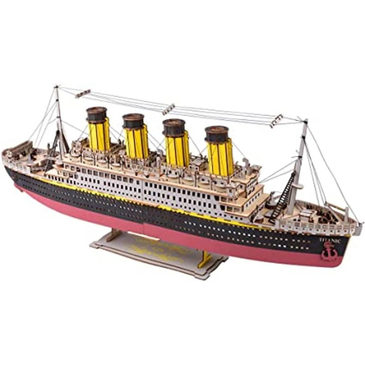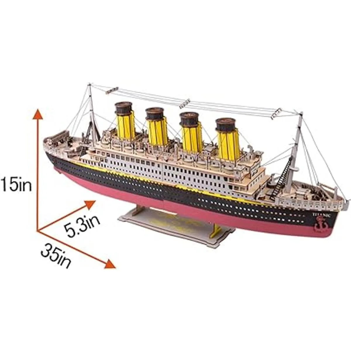 Bitopbi Rompecabezas de madera 3D de tamaño grande, modelo titánico, versión en inglés, coleccionable, construcción de construcción, colección de regalo para adolescentes y adultos
