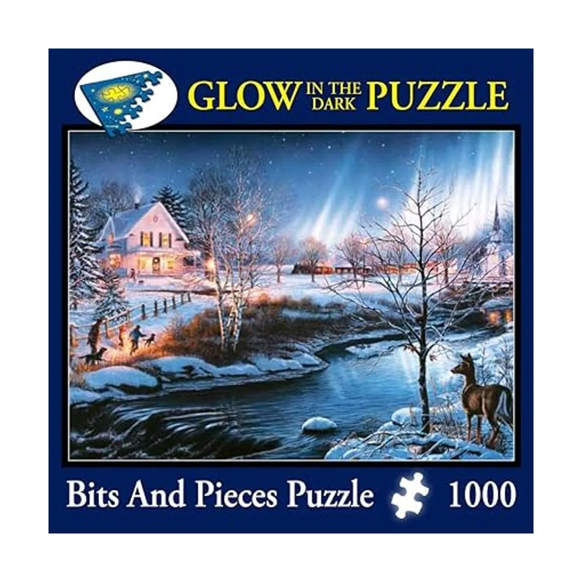 Bits and Pieces Rompecabezas de 1000 piezas que brillan en la oscuridad Todo es brillante por el artista James Meger Paisaje navideño de invierno Rompecabezas de 1000 piezas