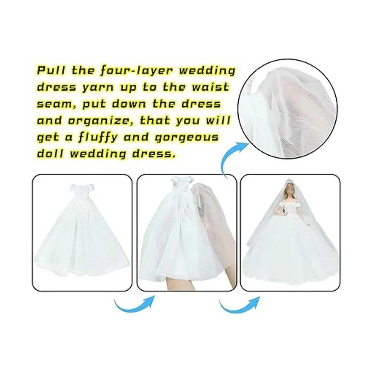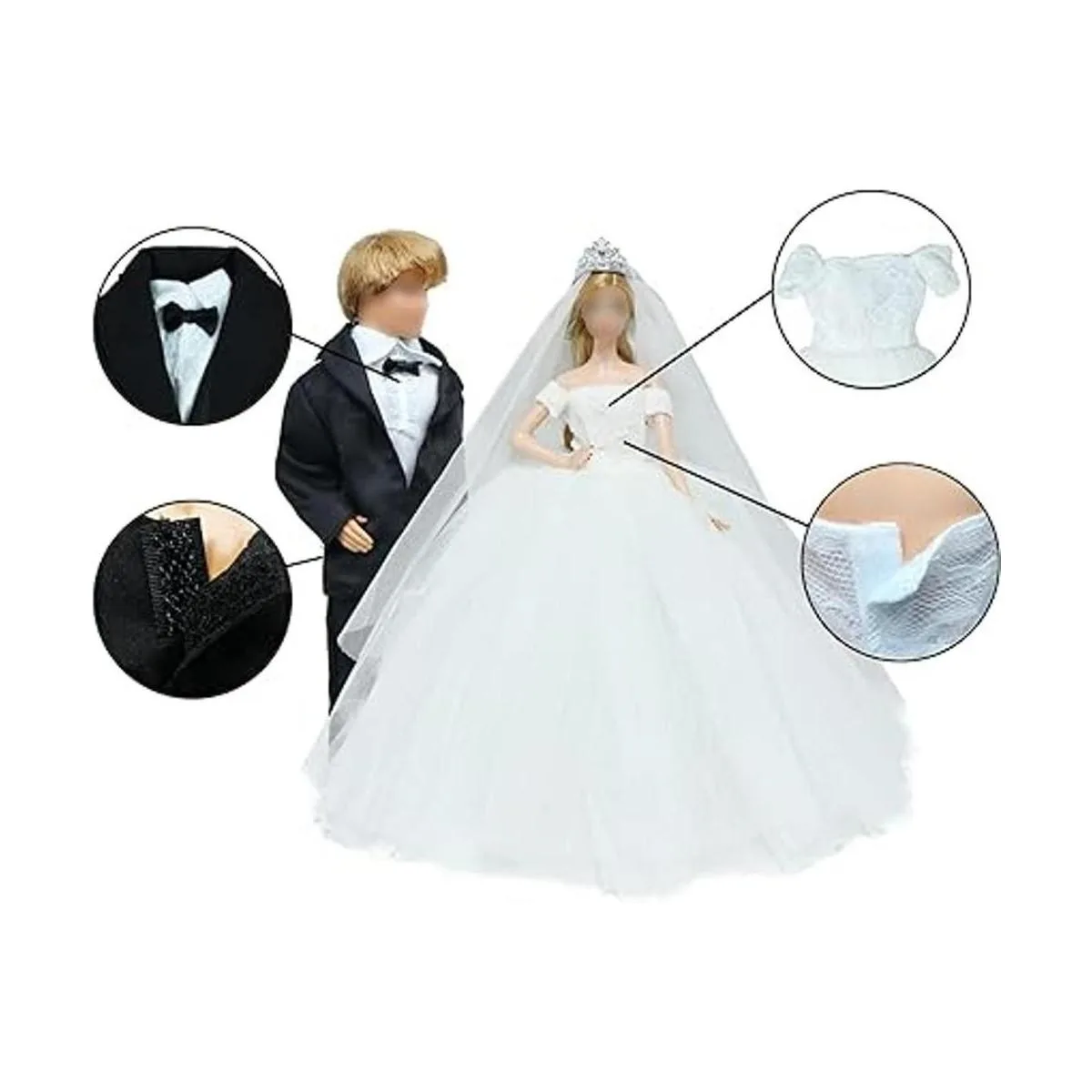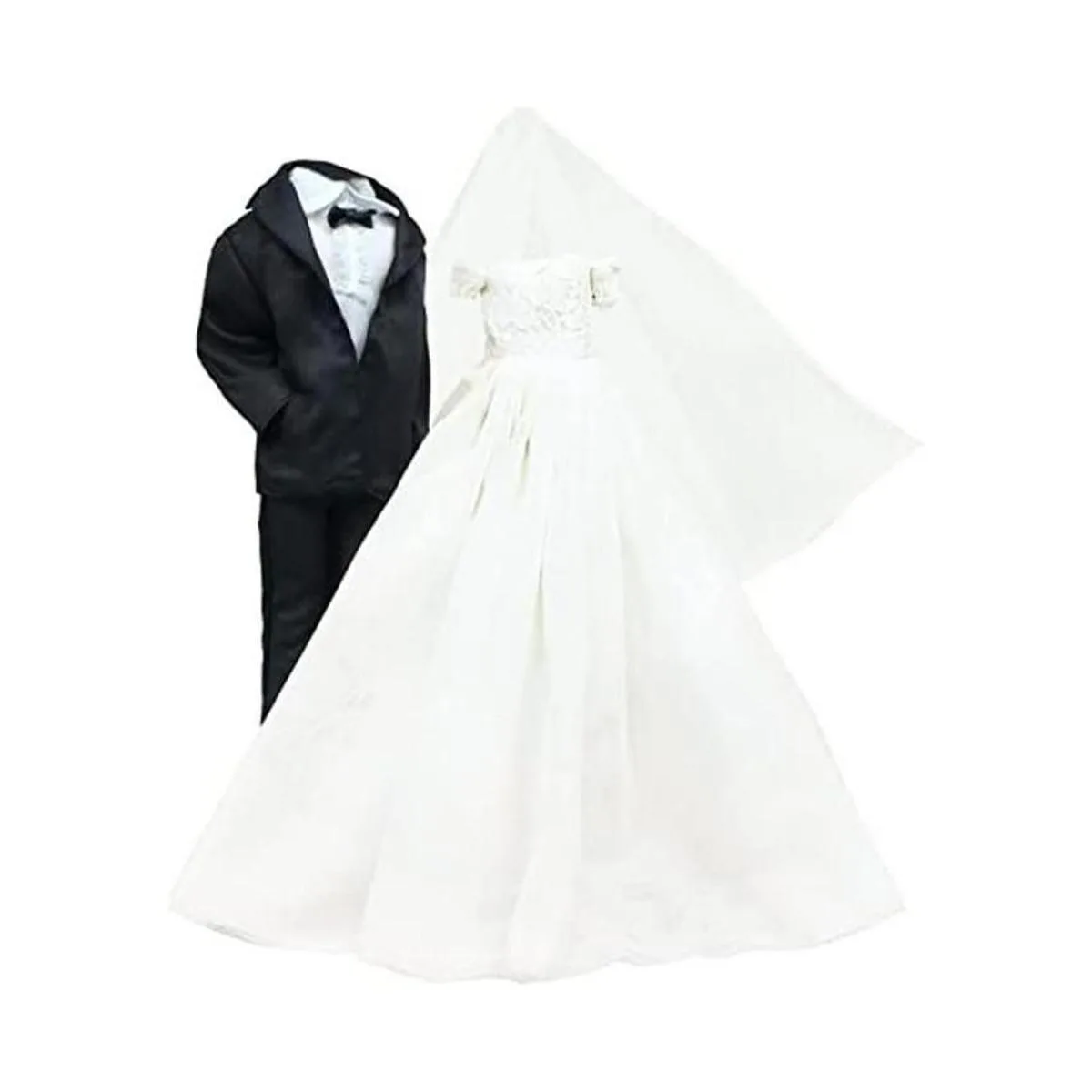 BJDBUS Conjunto de boda, vestido blanco, velo de novia y novio, traje formal para niños y niñas, ropa de muñeca de 11.5 pulgadas