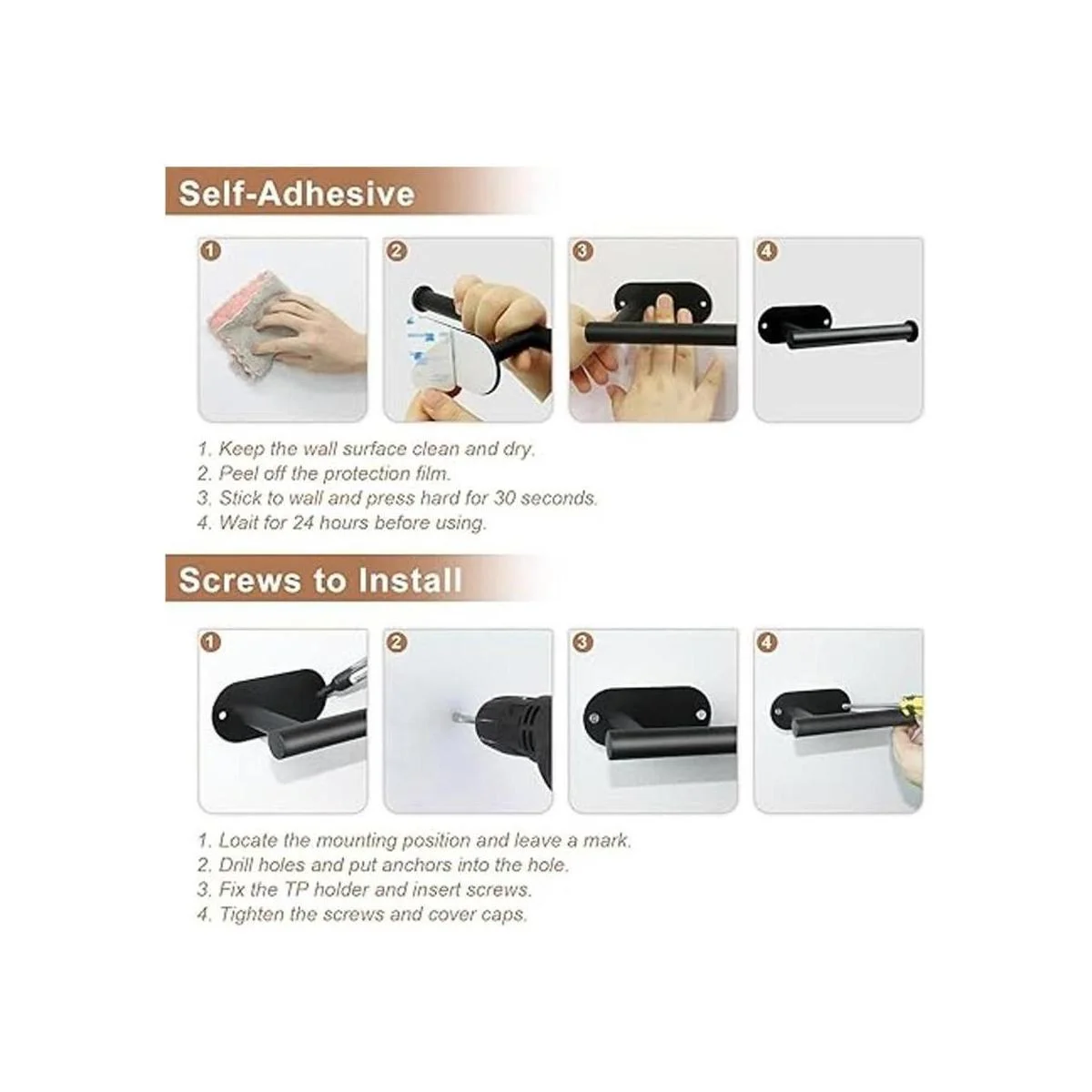 Adhesivo y tornillos para instalar: ofrece 2 maneras fáciles de instalar, perforación de tornillos y almohadilla adhesiva. Este juego de soportes para papel higiénico de baño viene con accesorios de tornillo y almohadilla adhesiva, si la almohadilla adhesiva no puede satisfacer tus fuertes necesidades de carga de carga, puedes utilizar directamente los tornillos para instalar.