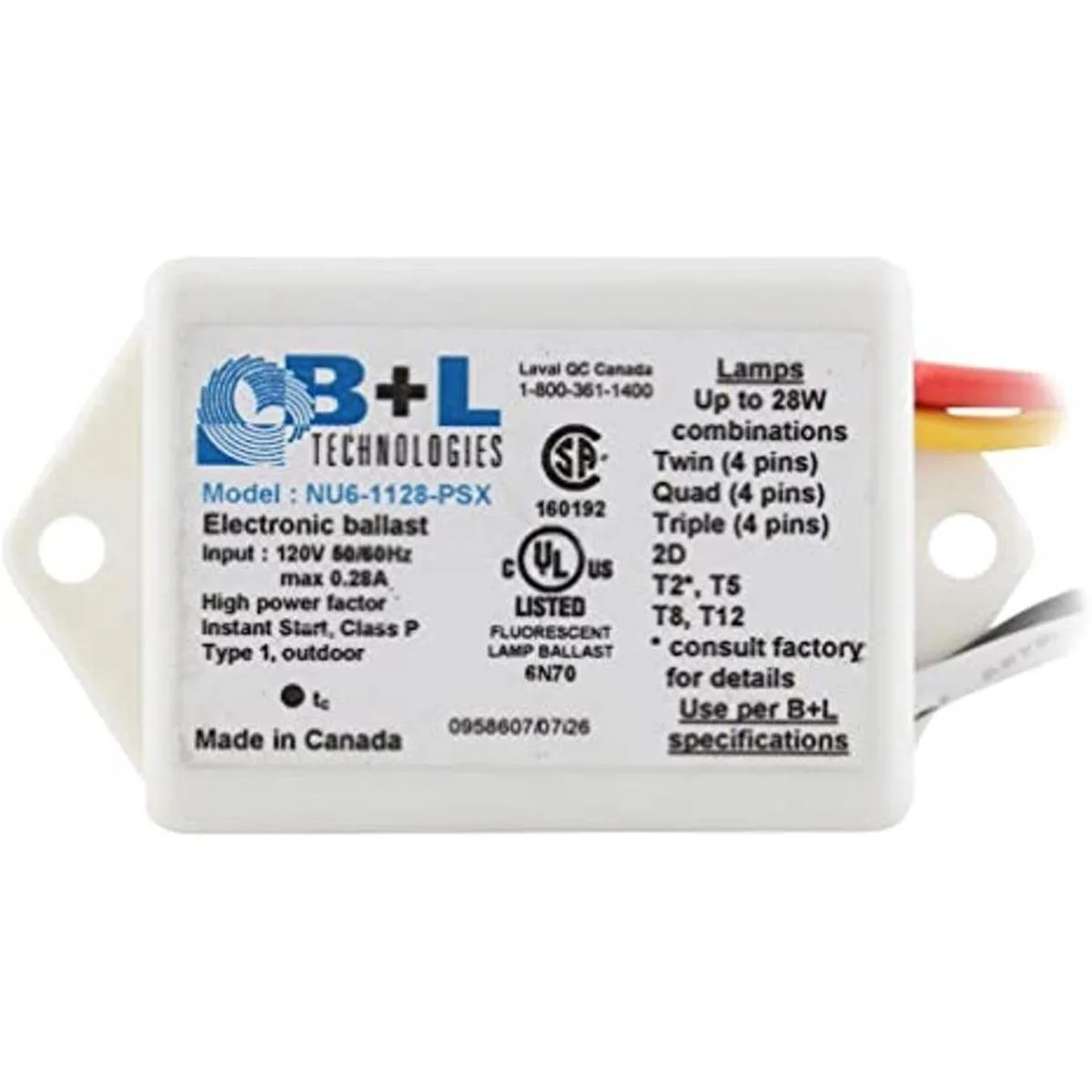 BL Technologies 47152 NU61128PSX Balasto fluorescente compacto