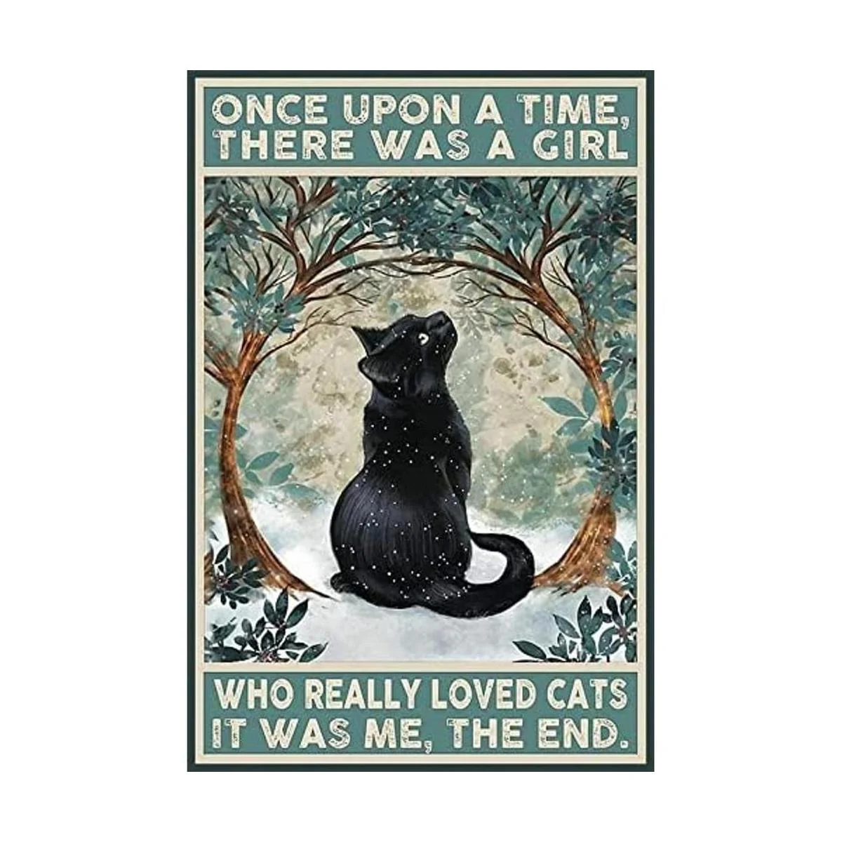 Black Cat Once Upon a Time There was a Girl Who Really Loved Letrero vintage divertido para decoración de pared de cueva de niña, regalo para niña 513