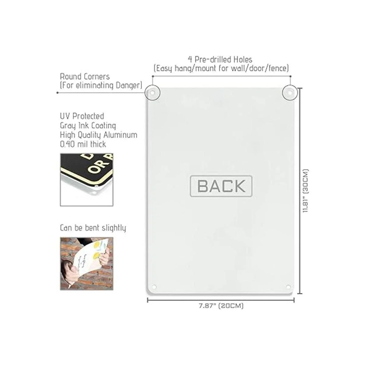 Cuatro agujeros preperforados en las esquinas redondeadas para colgar o montar fácilmente en cada superficie, incluyendo paredes, puertas, vallas, postes y puertas. Uso con cinta de espuma de doble cara, tiras de comando, cuerda de yute o clavos.
