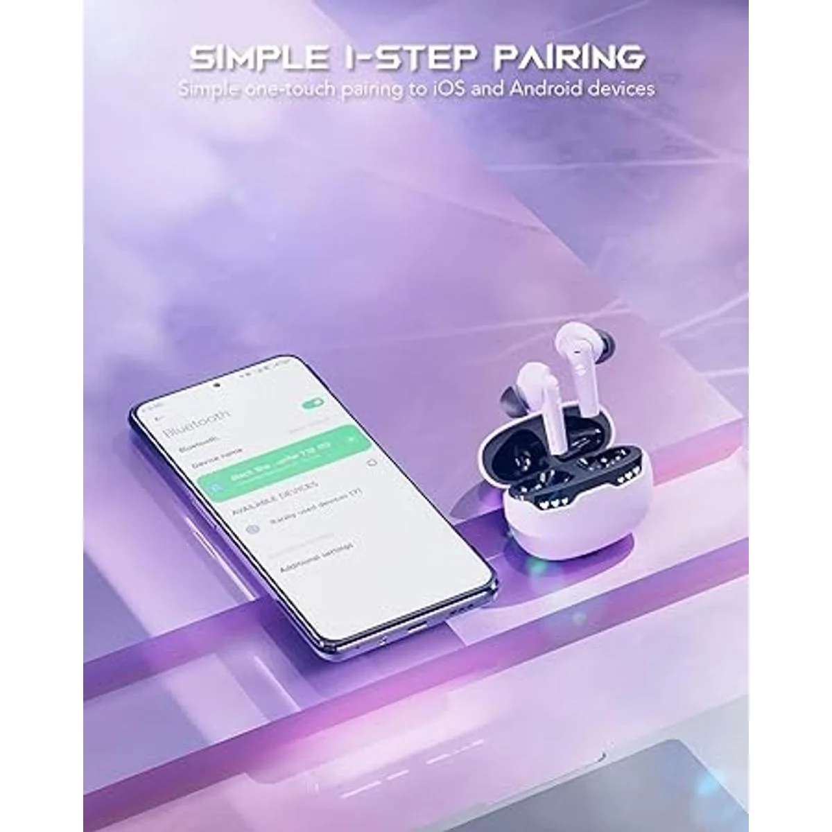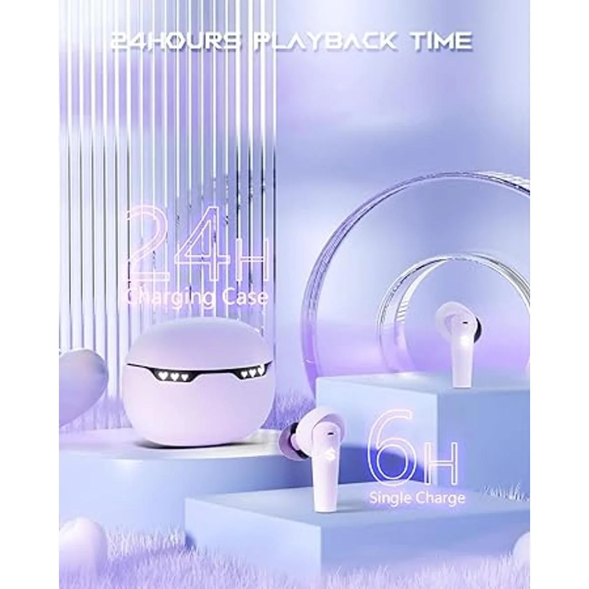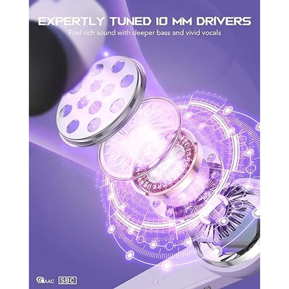 Black Shark Auriculares inalámbricos Bluetooth con luz LED Emoji, auriculares para juegos con latencia ultra baja de 45 ms, Bluetooth 5.1, modos duales de música y juegos, tiempo de reproducción de 24 horas, IPX5 impermeable, morado