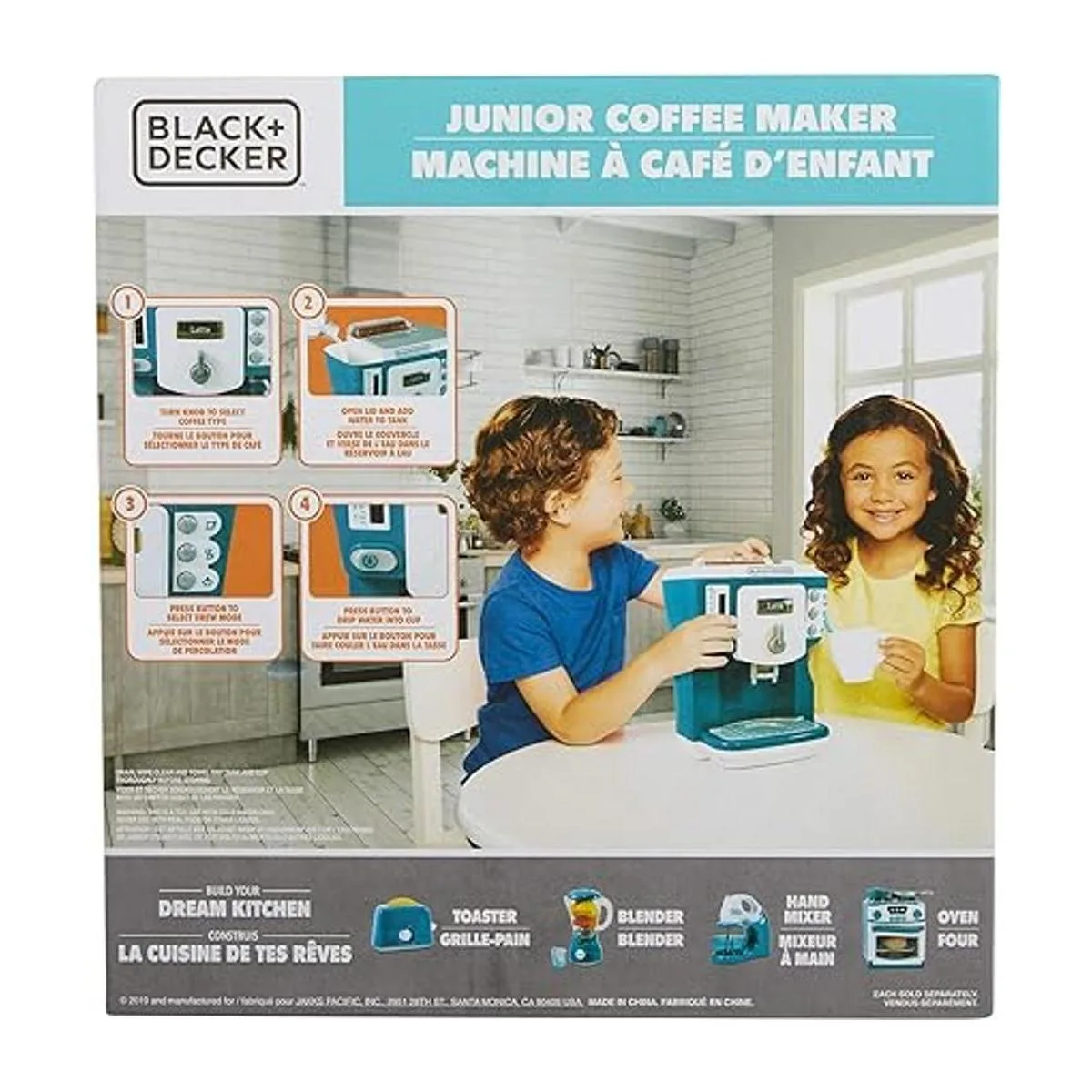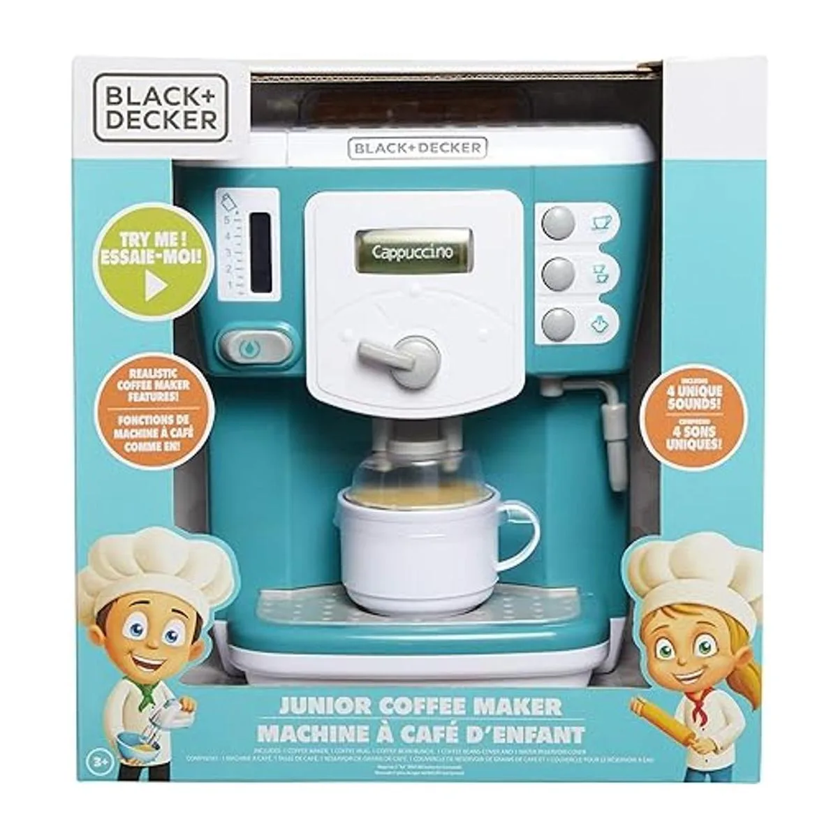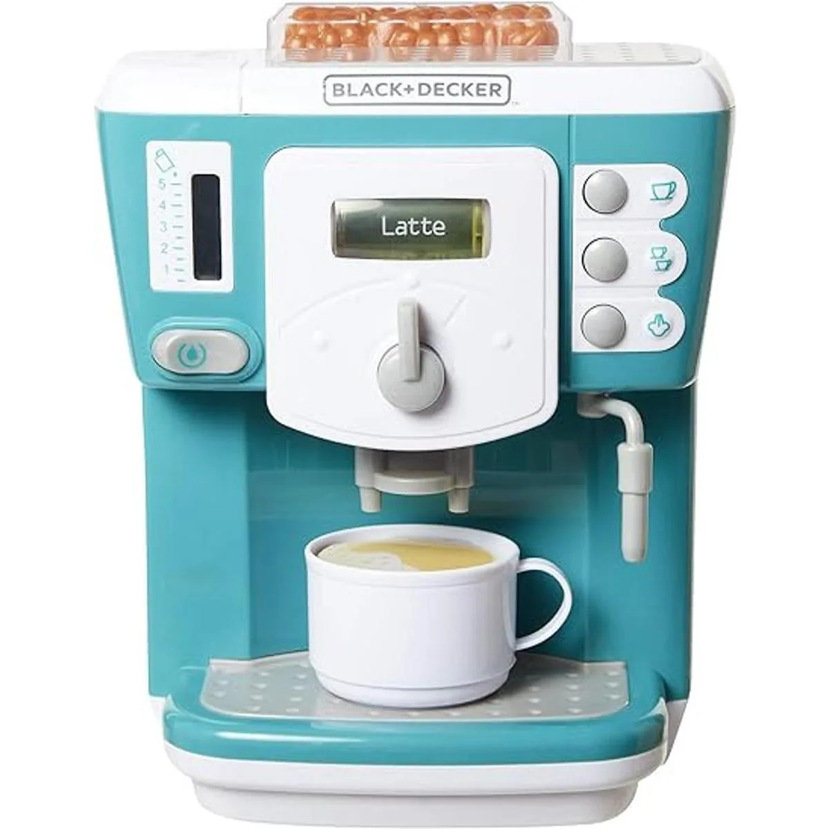 BLACKDECKER Cafetera junior para niños, juego de rol, aparato de cocina de simulación para niños con acción realista, luz y sonido, taza de café de juguete para diversión imaginaria
