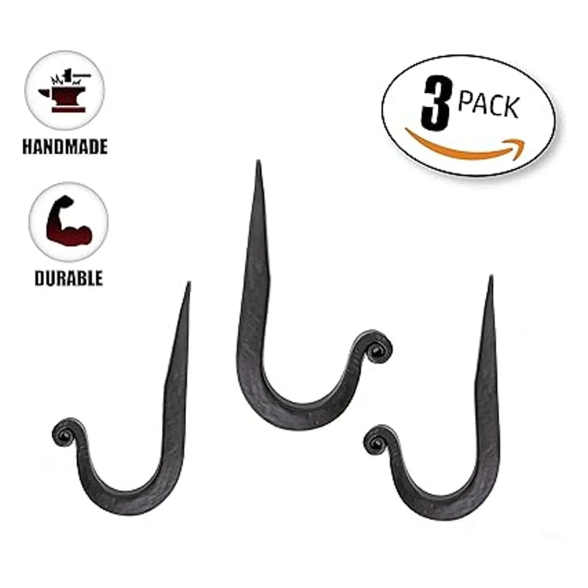 Blacksmith Ganchos de hierro forjado hechos a mano de perfil cuadrado simple para cocina y baño, ganchos para batas, toallas, abrigos, bolsas y trapos, juego de 3 3, negro