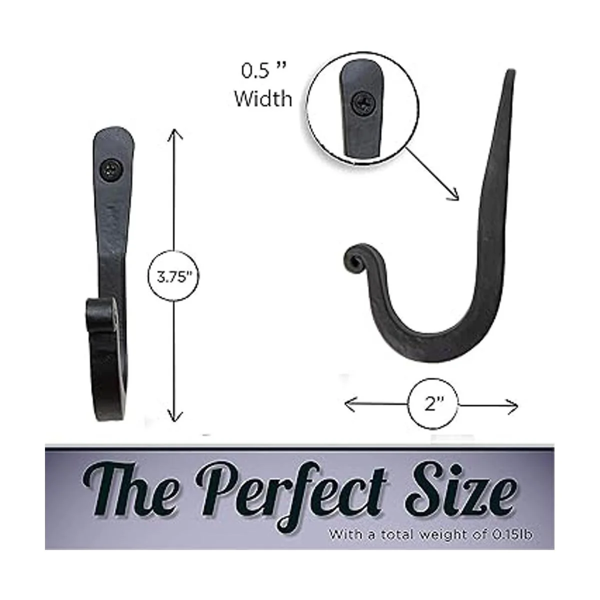 Cada gancho mide aproximadamente 3.75 pulgadas de largo, 0.5 pulgadas de ancho y se extiende 2 pulgadas de la pared