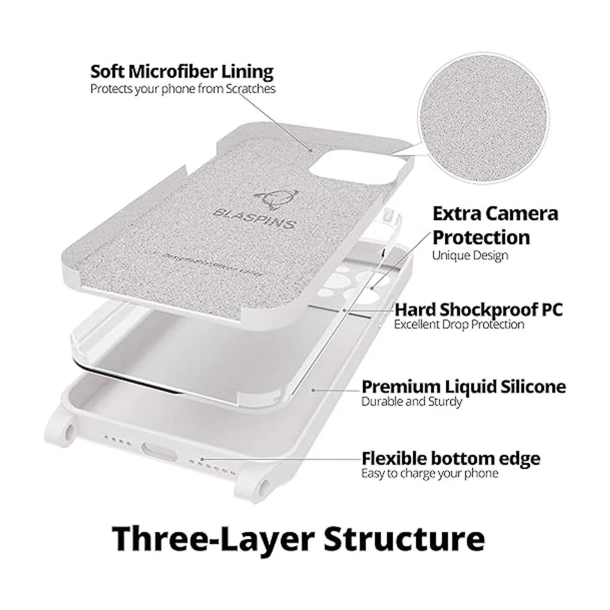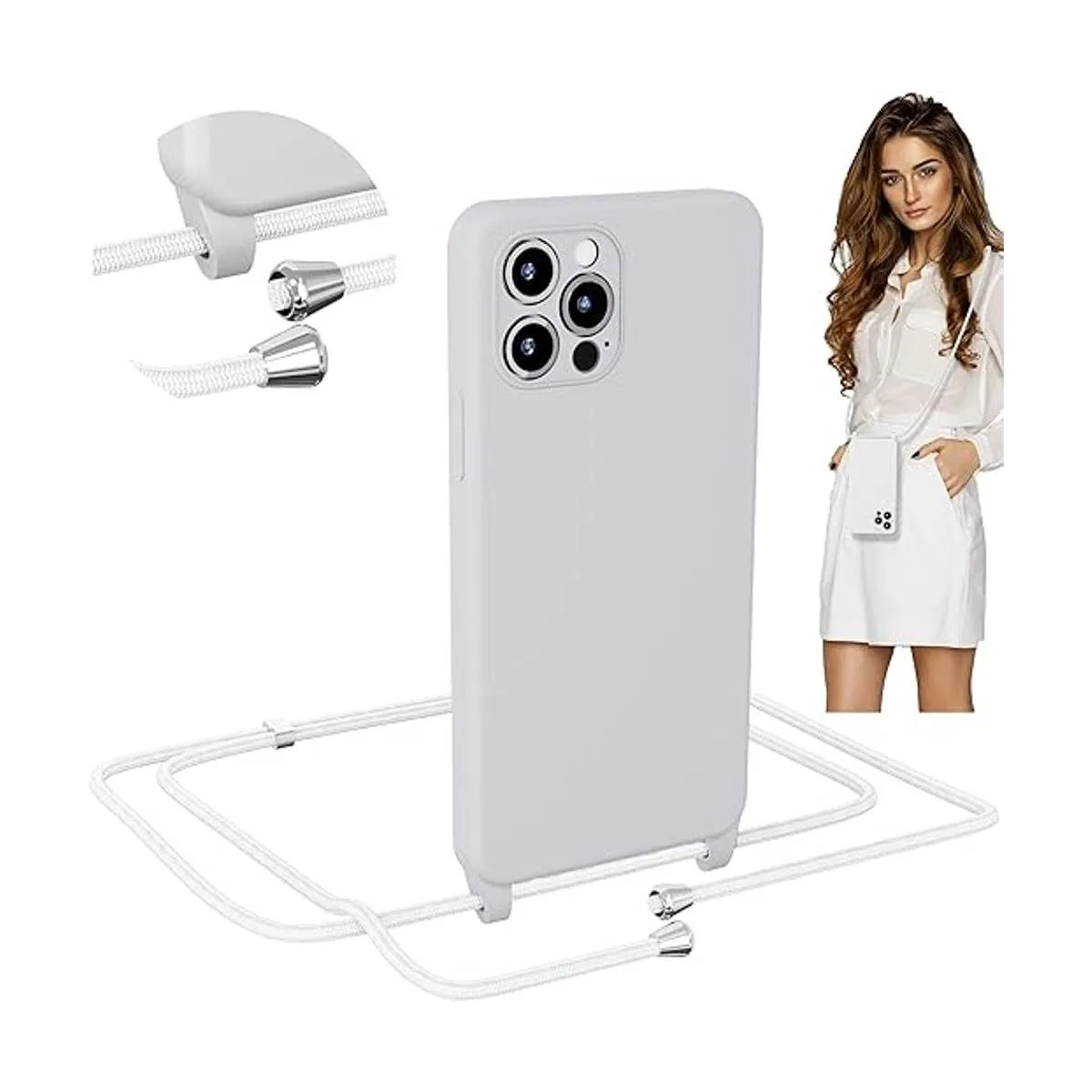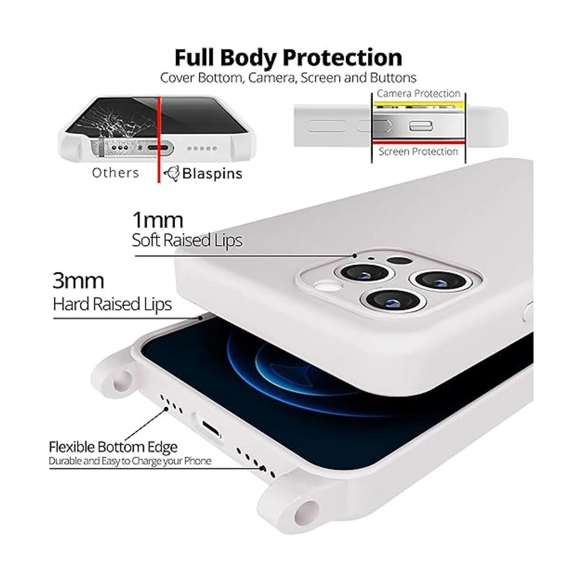 Blaspins Funda de teléfono con correa cruzada para iPhone 13 Pro, cuerda ajustable, cordón para el cuello del cinturón, cordón desprendible de cuerda, resistente a las caídas, funda protectora para manos libres de muñeca de 6.1 pulgadas, 13 Pro, color blanco