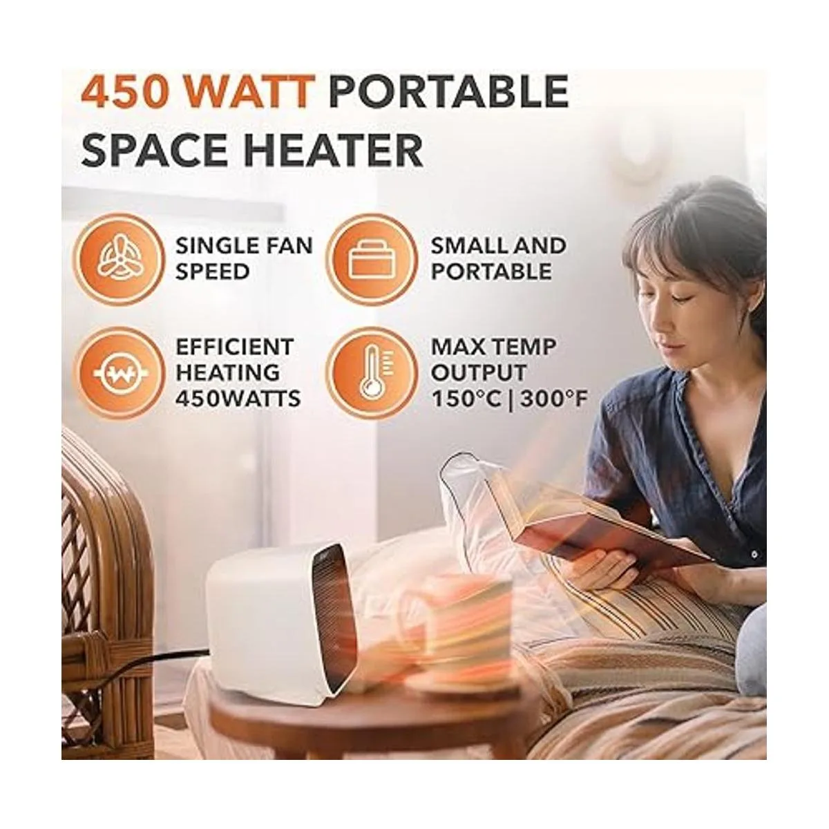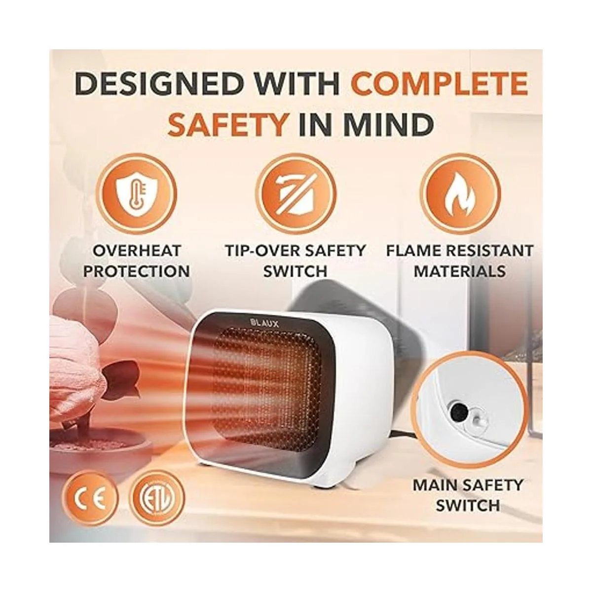 BLAUX Heatcore Calentador portátil de 450 W de bajo consumo Calentador de escritorio para oficina y hogar Calentador de oficina con interruptor de calentamiento e inclinación de 5 segundos Calentador de espacio pequeño para interiores
