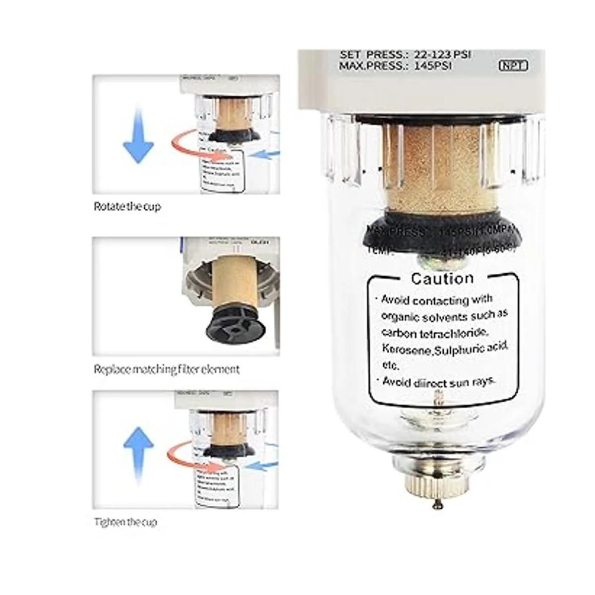 BLCH Secadora de línea de aire NPT de 14 pulgadas, secadora de aire para compresor, sistema de secado de aire comprimido AF200002 de drenaje manual de polietileno, cuenco de 0160 PSI 5 m