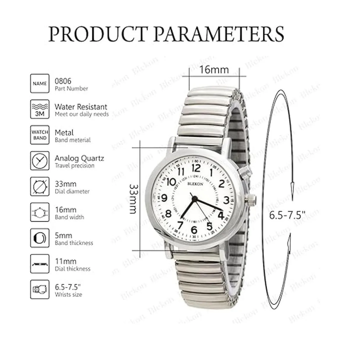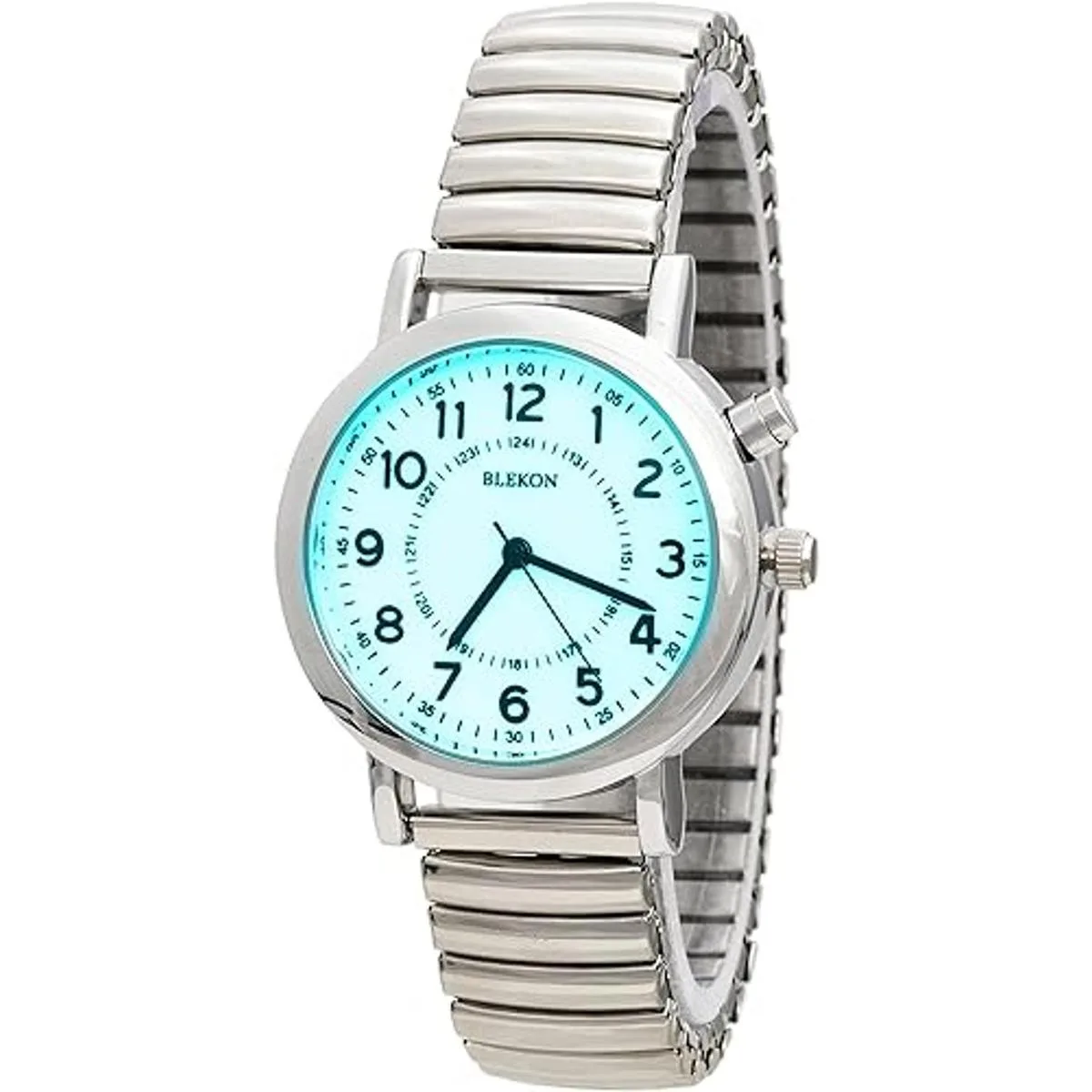 Blekon Reloj de esfera iluminada original para mujer, caja de 1.73 pulgadas, correa de expansión brillante, reloj analógico con esfera que brilla en la oscuridad, ideal para uso diario y de fiesta, M, Iluminado
