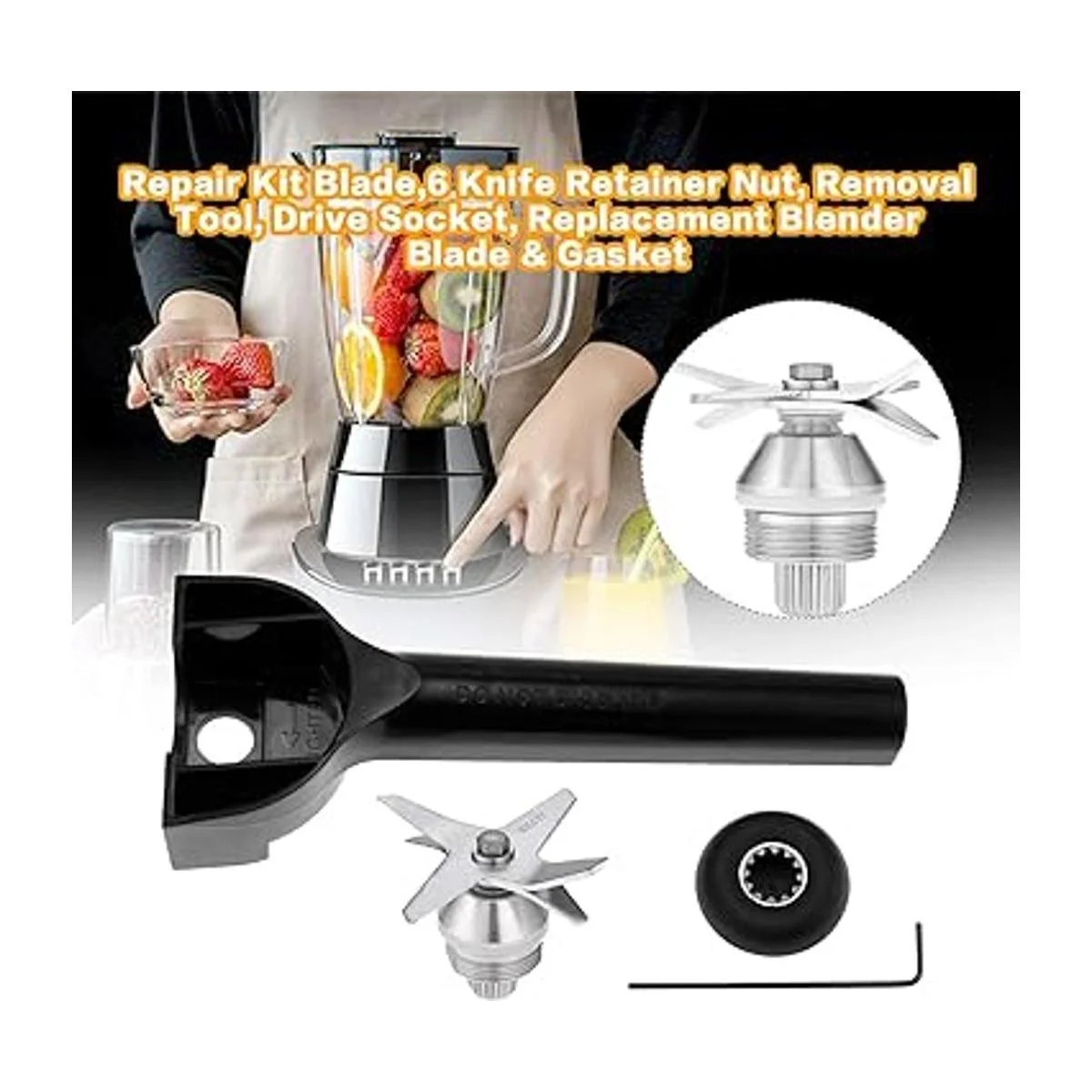 Blender Kit de reparación de cuchillas húmedas de 6 cuchillos, llave, herramienta de extracción, zócalo de accionamiento, reemplazo compatible con mezclador de licuadora Vitamix serie 5200 de 64 onzas y 32 onzas
