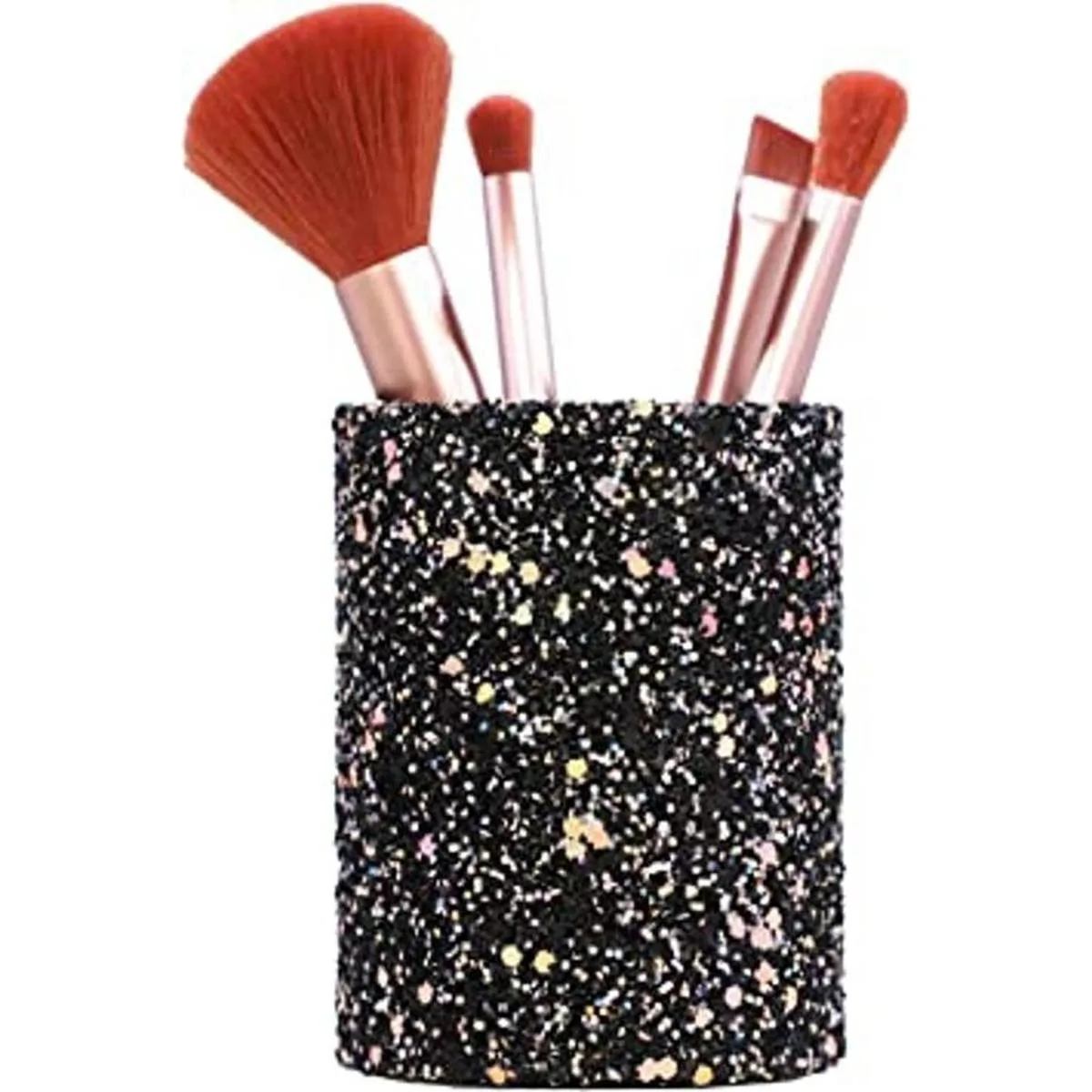 Bling Sequins Makeup Brush Holder, Cute Glitter Vanity Decor Organizer, Cosmetic Brushes Comb Pen Storage Holders Cup Black
