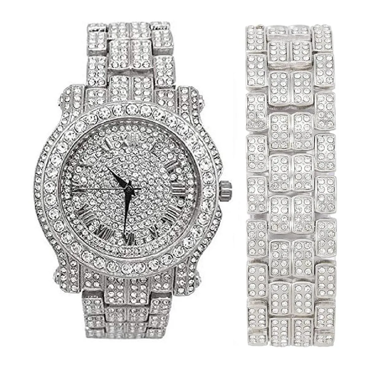 Hip Hop Bling Bling Reloj de 9.0 in con pulsera cubana de 9.0 in en caja de regalo. Si es demasiado largo se puede ajustar y hacer más pequeño por un joyero. Caja de reloj de 0.9 in de diámetro. Correa de reloj de 0.86 pulgadas de ancho.