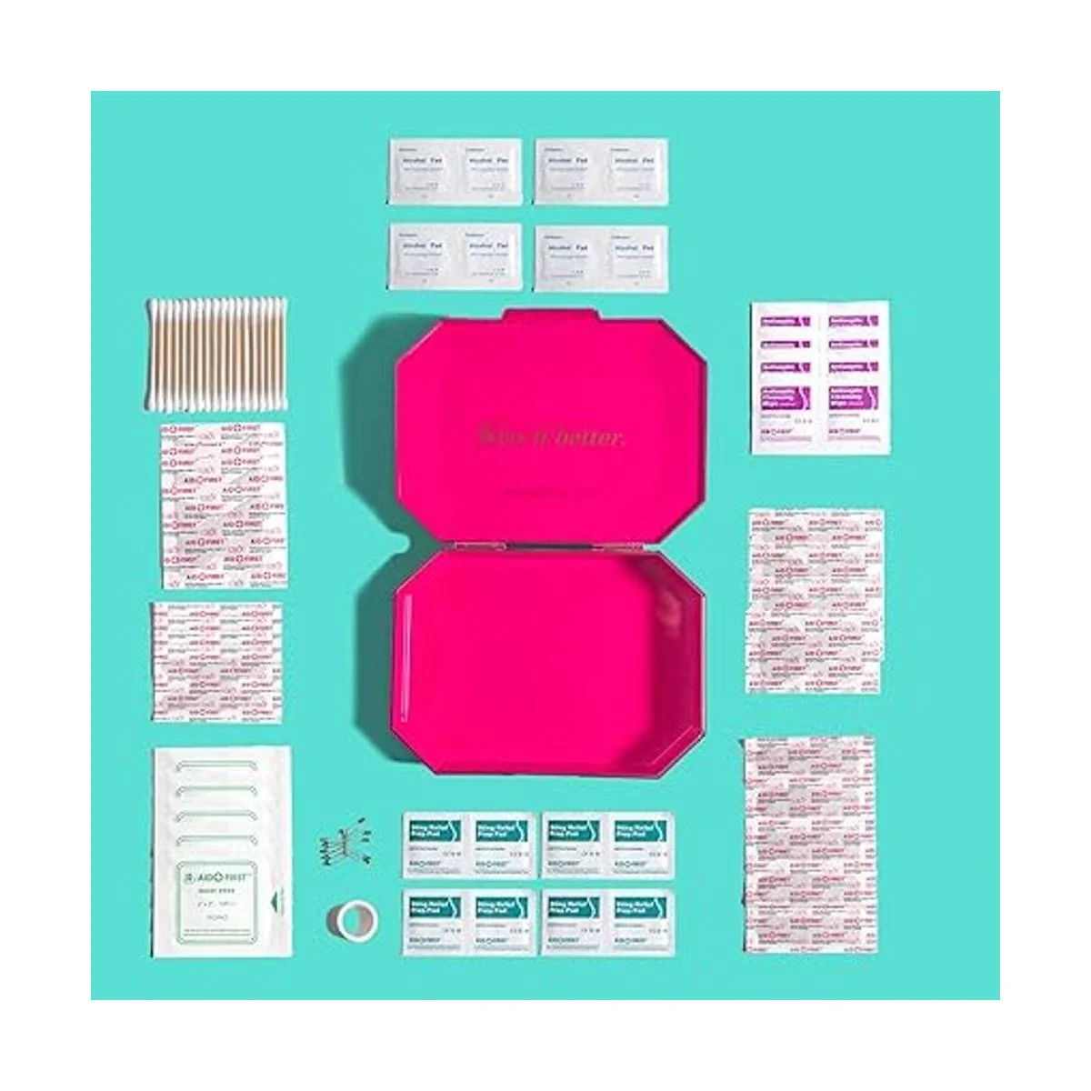 BLINGSTING Kit de embrague de primeros auxilios, funda de seguridad compacta con 75 artículos esenciales de primeros auxilios, color oro rosa