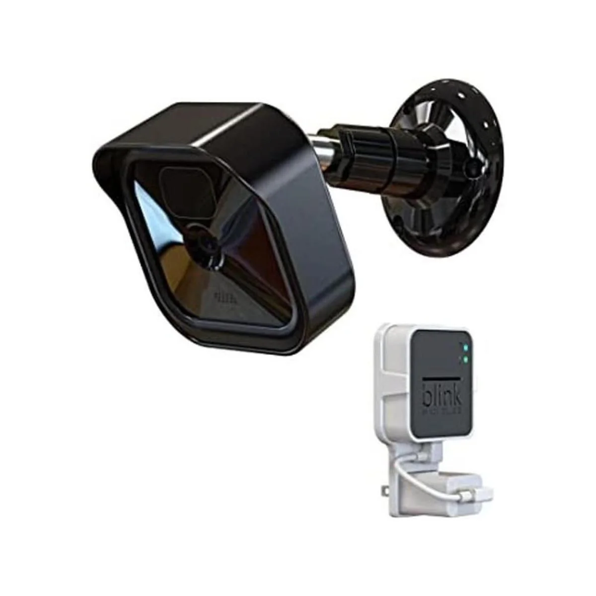 Blink Soporte de pared para exterior, resistente a la intemperie y montaje ajustable de 360 grados con módulo de sincronización de parpadeo, 2 tomas de corriente para cámara de seguridad interior y exterior negro, 1 paquete