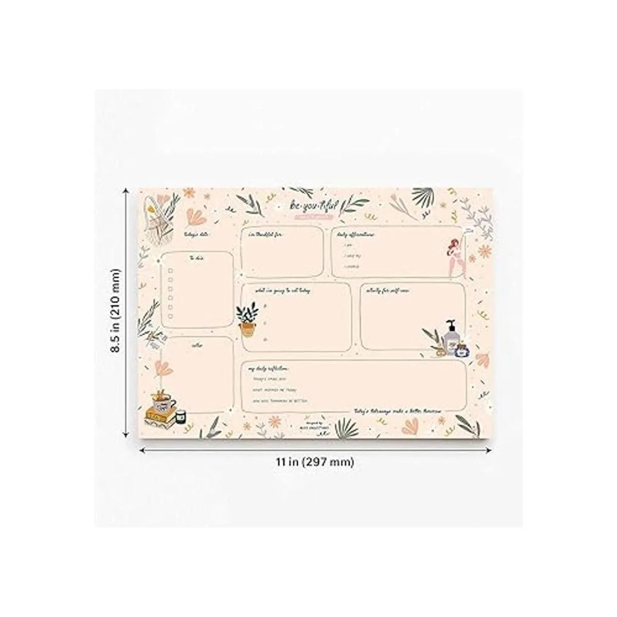50 láminas de alta calidad. Nuestro planificador diario sin fecha cuenta con un sentimiento Beyoutiful y un diseño inspirado en el amor propio.