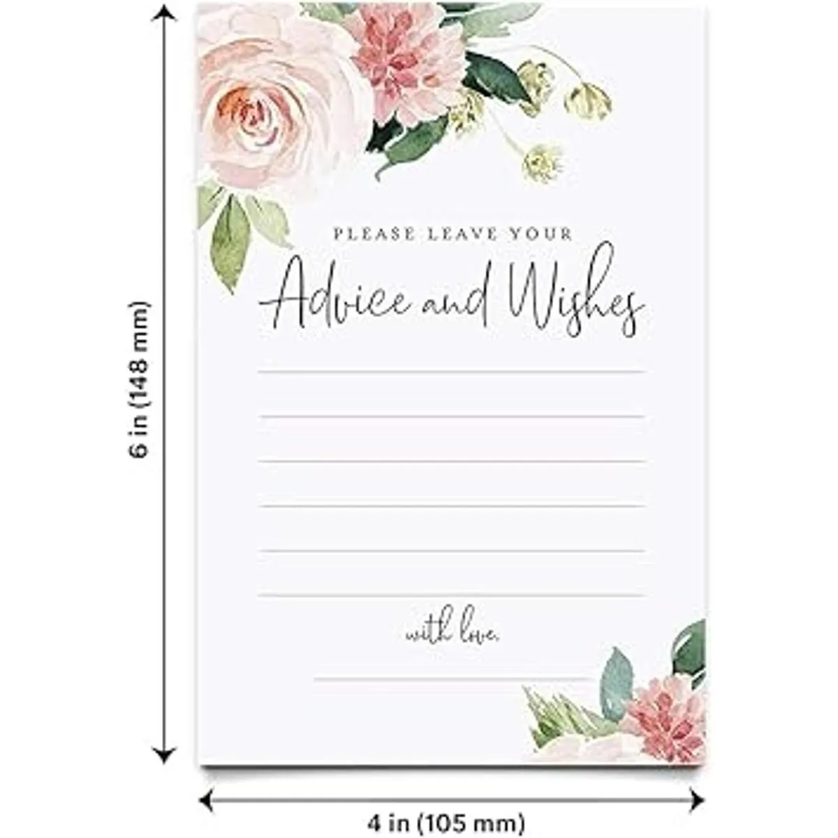 Bliss Collections Tarjetas de consejos y deseos, flores bohemias, perfectas para despedidas de soltera, bodas, baby shower, fiesta de graduación, jubilación, palabras de sabiduría para novia y novio, tarjetas de 4 x 6 pulgadas 50 tarjetas