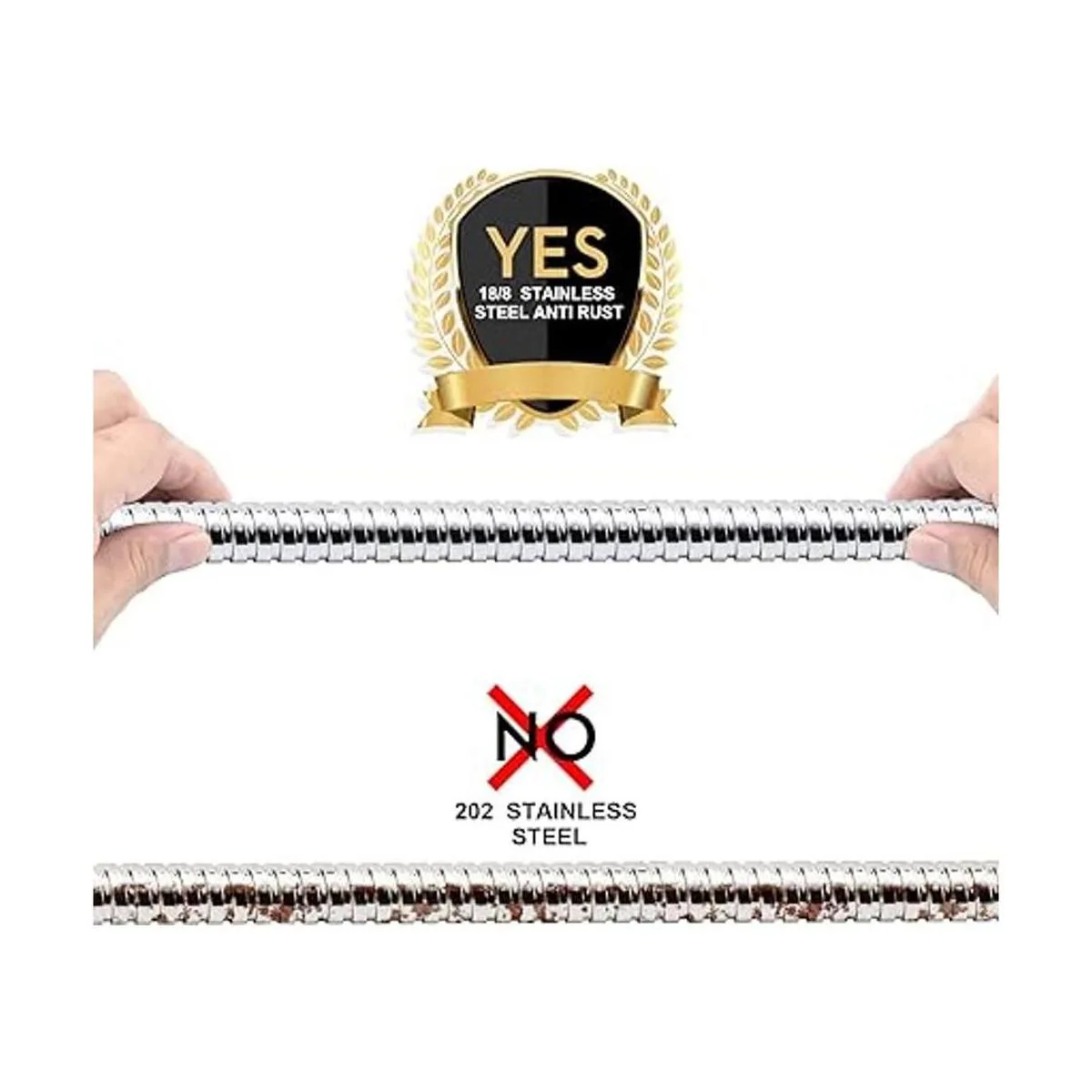 Los acabados cromados resisten la corrosión y el deslustre, y el tubo interior está hecho de material EPDM de PVC de calidad superior para alta presión y resistencia a la temperatura.