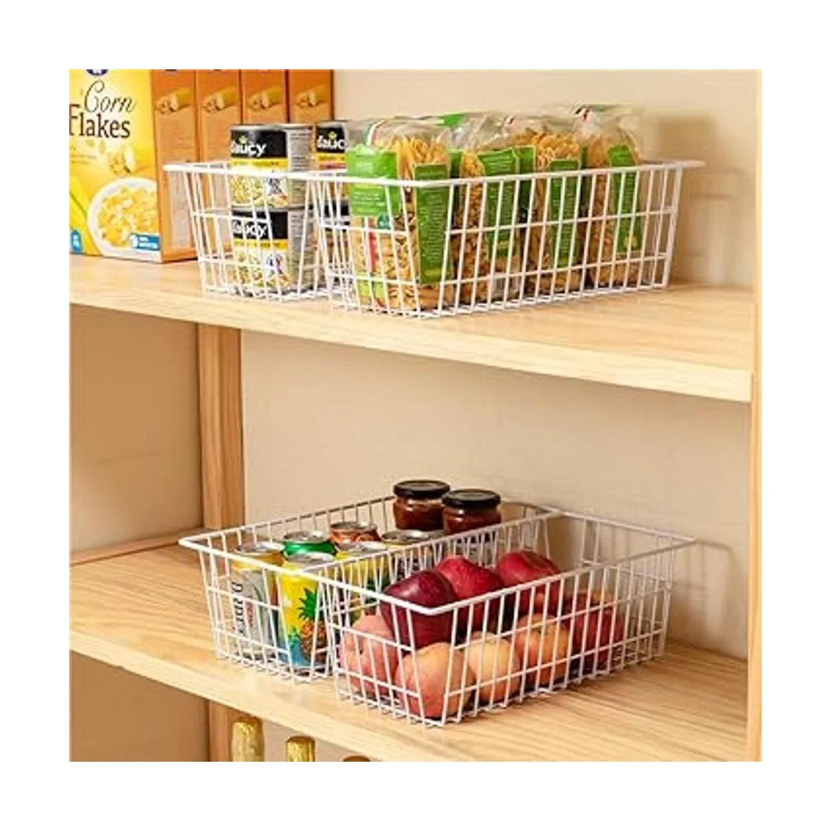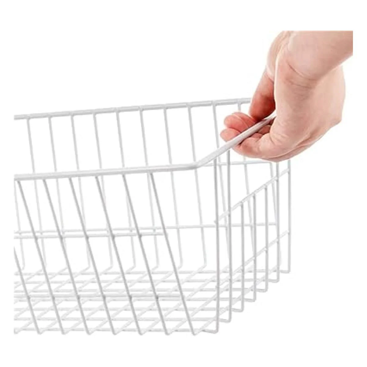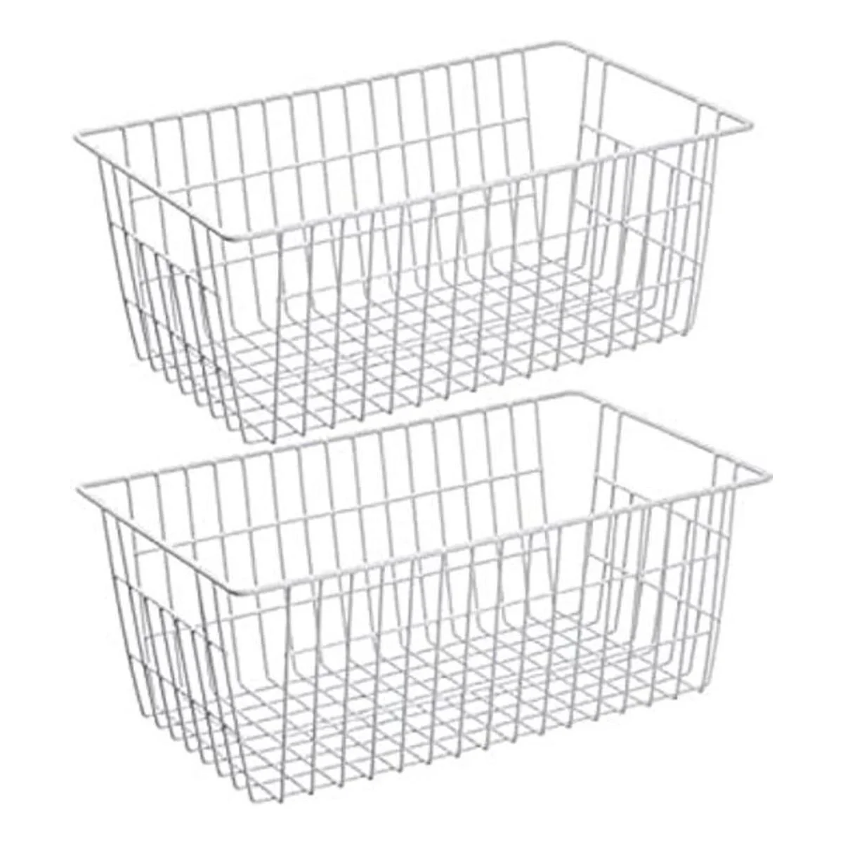 blitzlabs Cestas de congelador, cestas de alambre de granja, organizadores de despensa de alimentos, cestas de almacenamiento para despensa con asas, almacenamiento de alimentos para cocina, armarios, armario, dormitorio, baño, juego de 2, color blanco