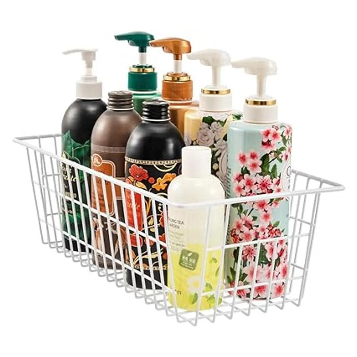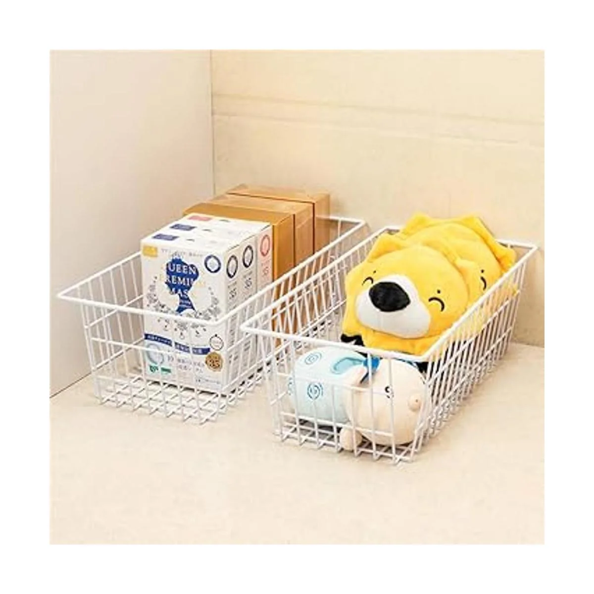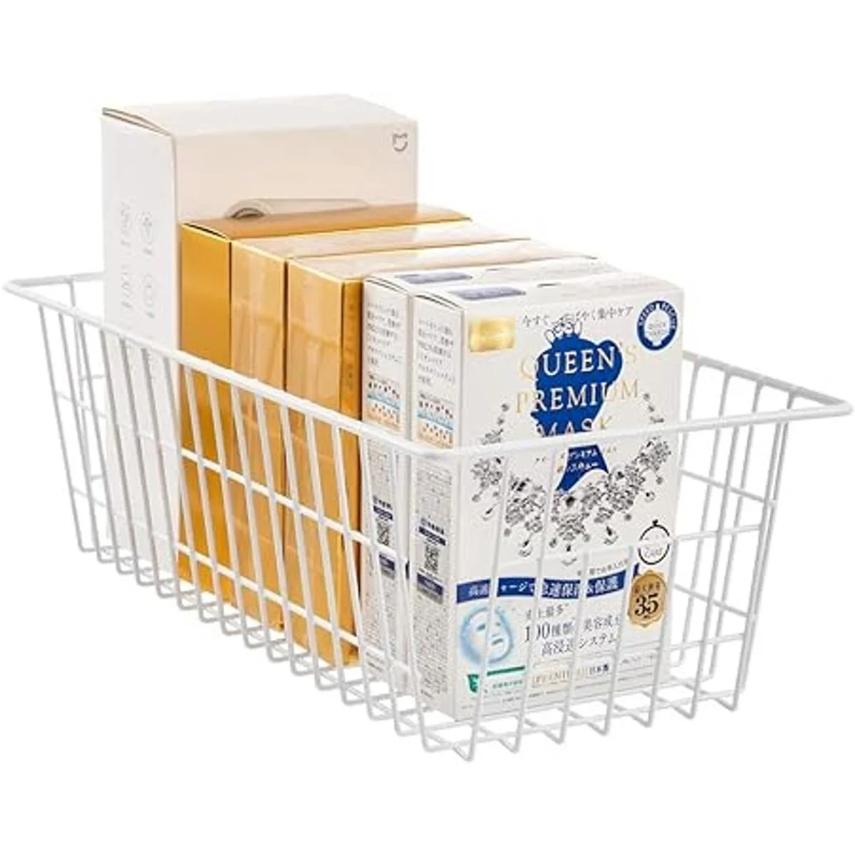 Múltiples opciones de almacenamiento: la cesta de metal es el organizador perfecto para cocina, refrigerador, baño, dormitorio, armario, lavandería, garaje, oficina y entradas; perfecto para almacenar artículos de despensa, juguetes, manualidades, suministros de oficina y pequeños electrodomésticos