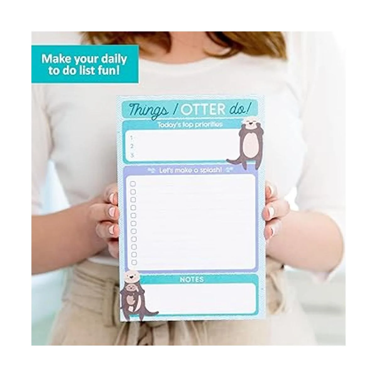 Bloc de notas de lista diaria de tareas, 50 hojas de 5.5 x 8.5 pulgadas, planificador de tareas de productividad y almohadilla de seguimiento de hábitos, bonita idea de regalo de nutria y suministros de oficina para alcanzar objetivos y rastrear tareas y citas