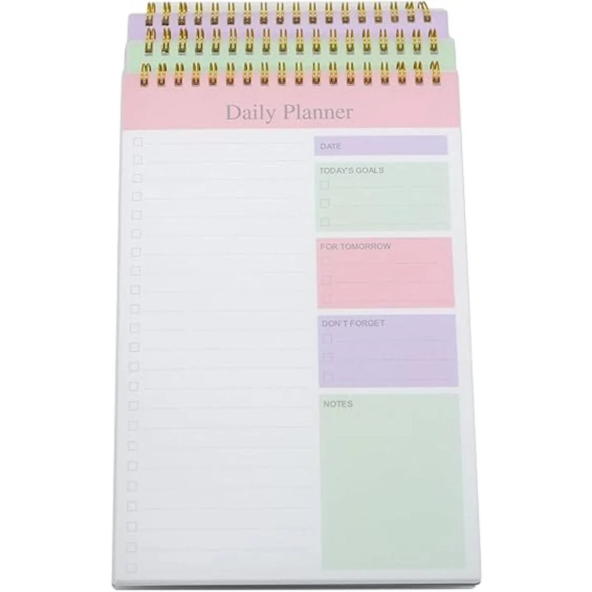 Bloc de notas sin fecha, agenda diaria, 80 hojas de 6.5 x 9.8 pulgadas, organizador de productividad para el trabajo, planificador académico morado, rosa verde