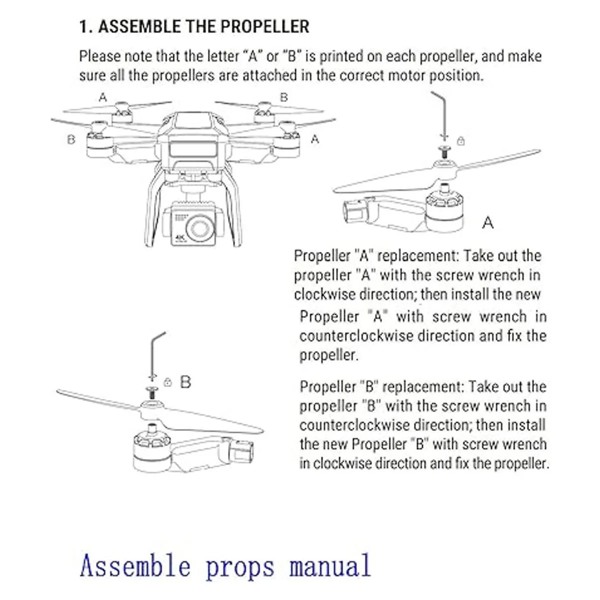 Hélice Un manual de repuesto: encuentra el tornillo de extremo de pegamento blanco antisuelto, es para hélice A. Saca el proepller A con llave scew en el sentido de las agujas del reloj, el extremo del tornillo es blanco. luego instala la nueva hélice en sentido horario para fijar la hélice A. Hélice A con extremo de tornillo pegamento blanco antisuelto