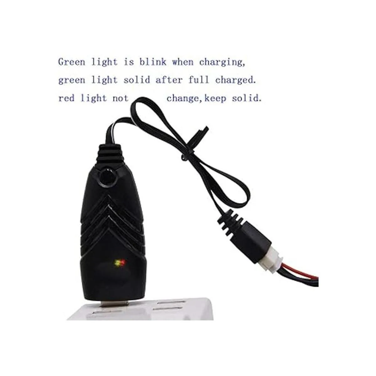 La luz verde parpadea cuando se carga, la luz verde detiene el parpadeo después de cargarse completamente. No cargues tu batería si la batería parece dañada. Puerto blanco XH4P de 4 pines, CC 5 V 2 A, salida 11.1 V 1500 mA, cuando se carga, la luz verde parpadea y la luz roja es sólida
