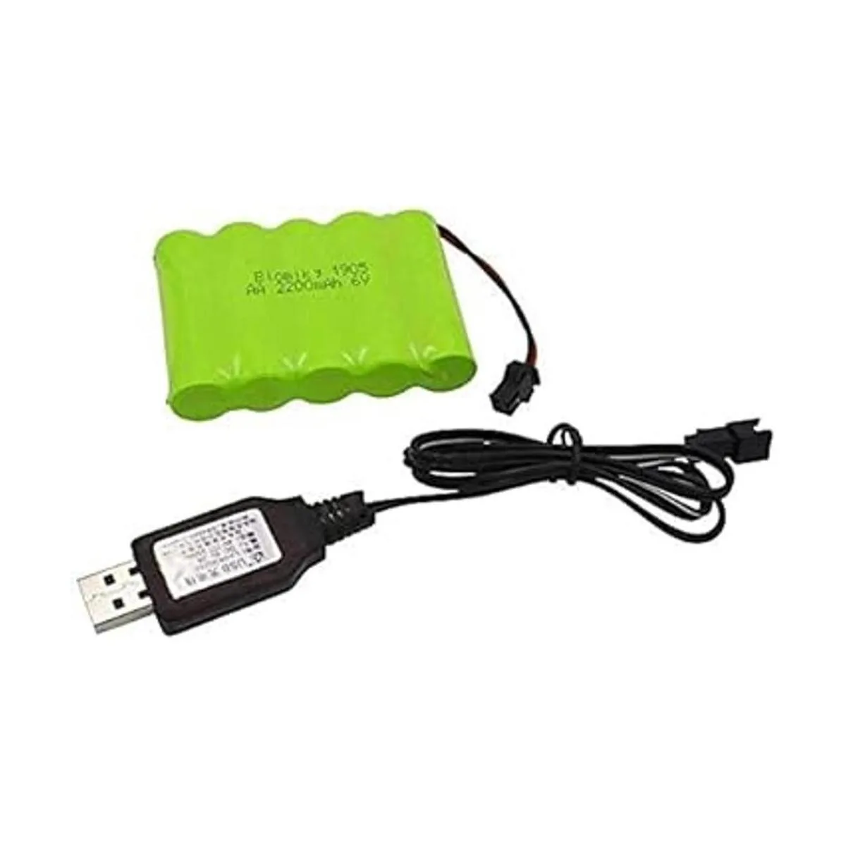 Blomiky Paquete de batería recargable NiMH 5 AA de 6 V 2200 mAh con conector SM2P negro de 2 pines y cable de cargador USB para RC Camiones Coches Vehículos 6 V NiMh