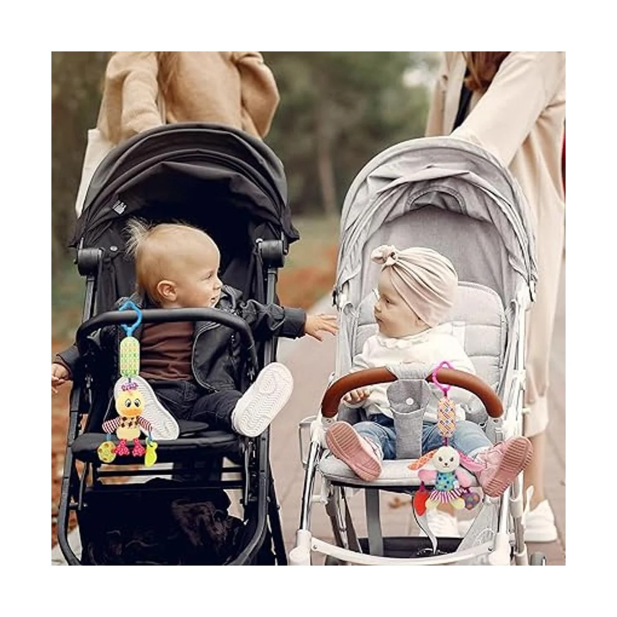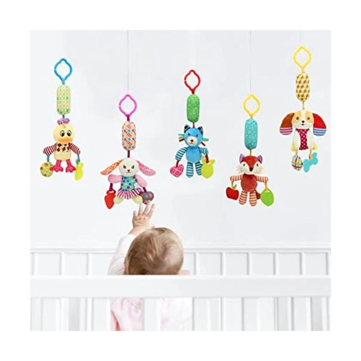 BLOOBLOOMAX Juguetes de asiento de coche para bebé, sonajero de felpa suave para bebés, muñeca de animales lindos, juguetes de cochecito colgantes de desarrollo temprano para niños y niñas recién nacidos, regalos 5 piezas