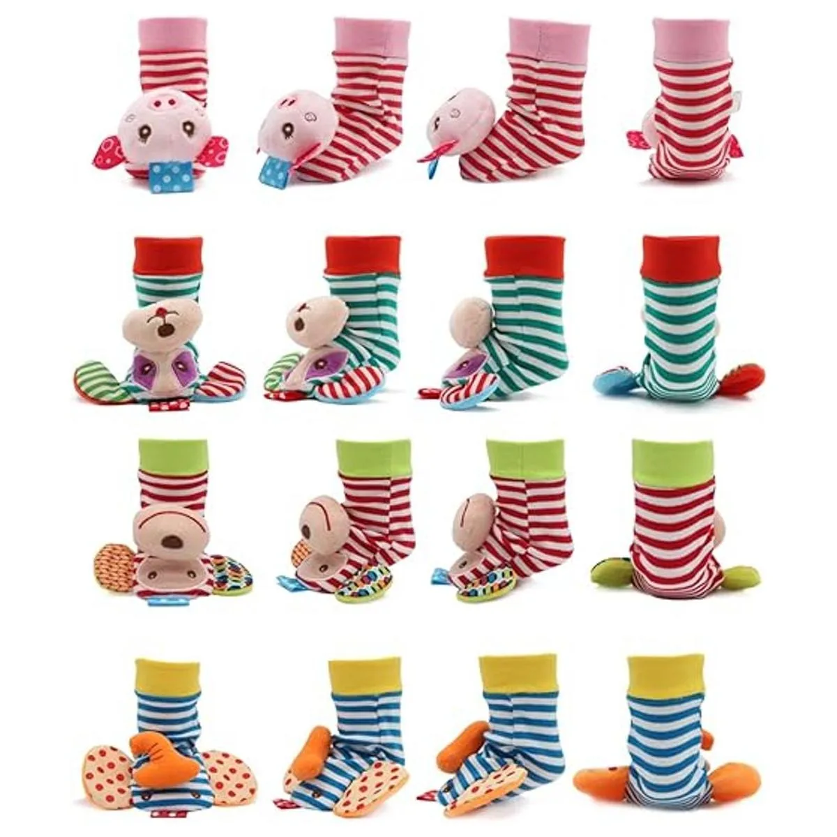 BLOOBLOOMAX Juguetes de calcetines de sonajero para bebés, sonajeros de calcetines para bebés de 0 a 24 meses, buscador de pies de animales para bebés algodón D