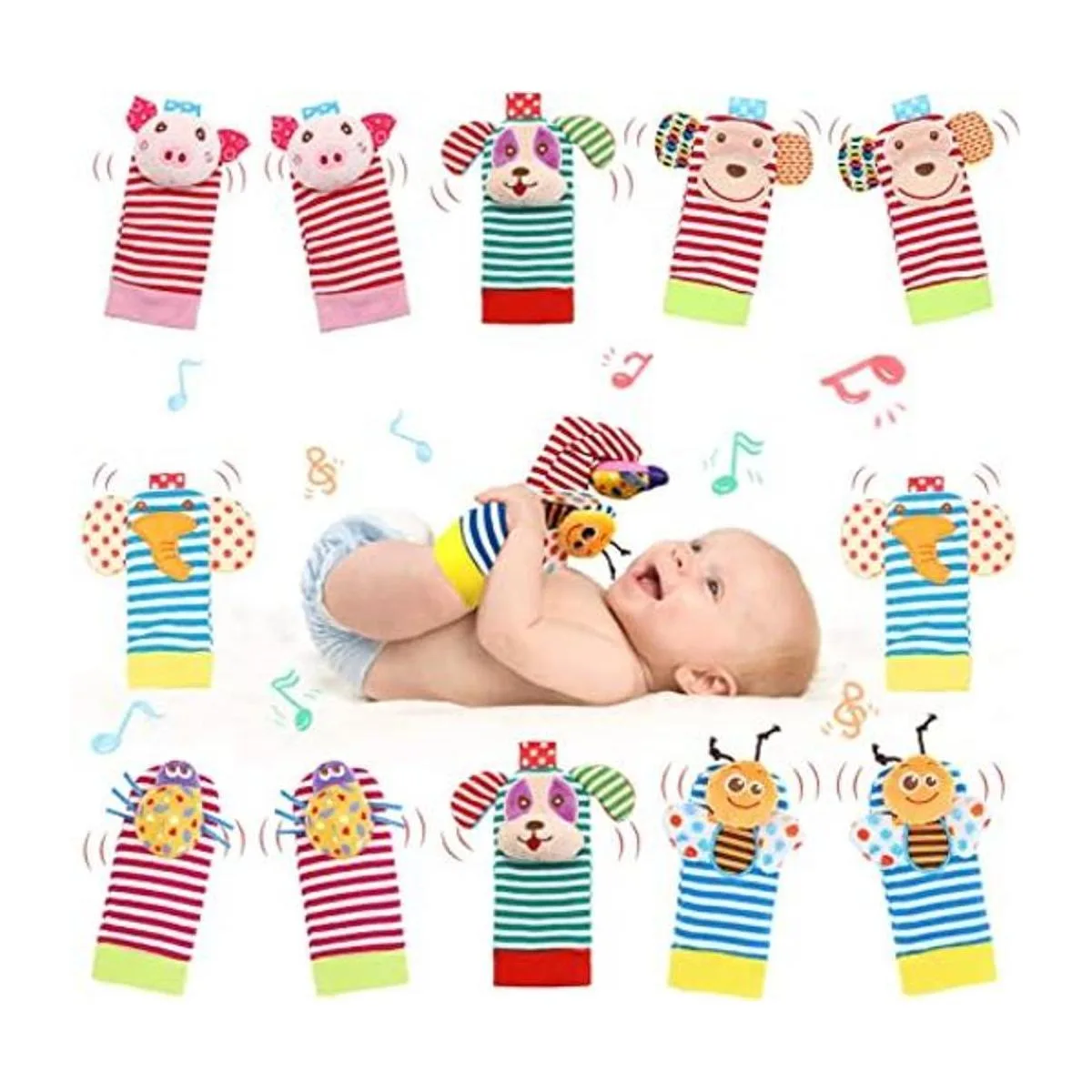 Compañero de bebé: el juego de calcetines buscadores de pies es ajustable, adecuado para bebés de 0 meses en adelante. Regalo perfecto para bebés recién nacidos.