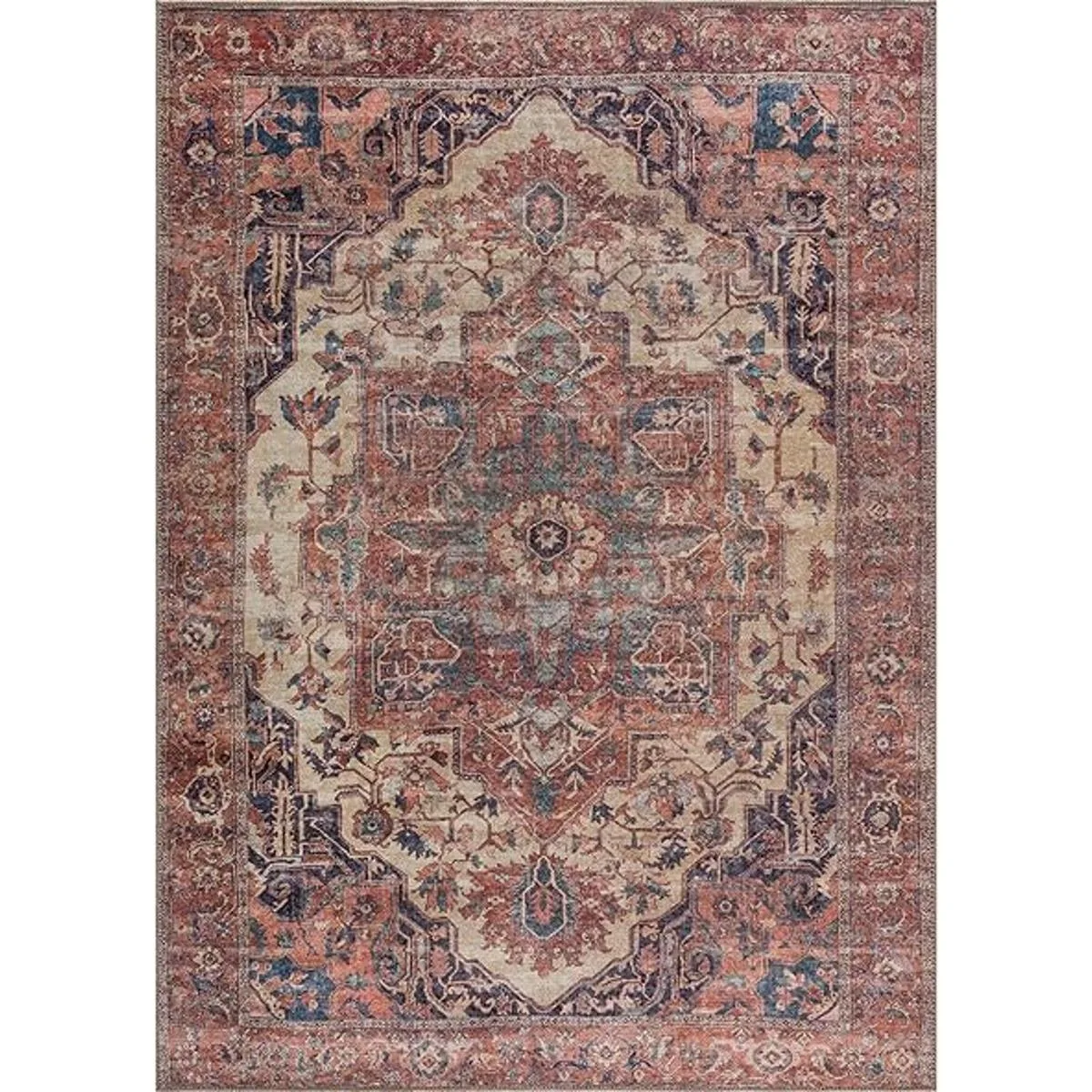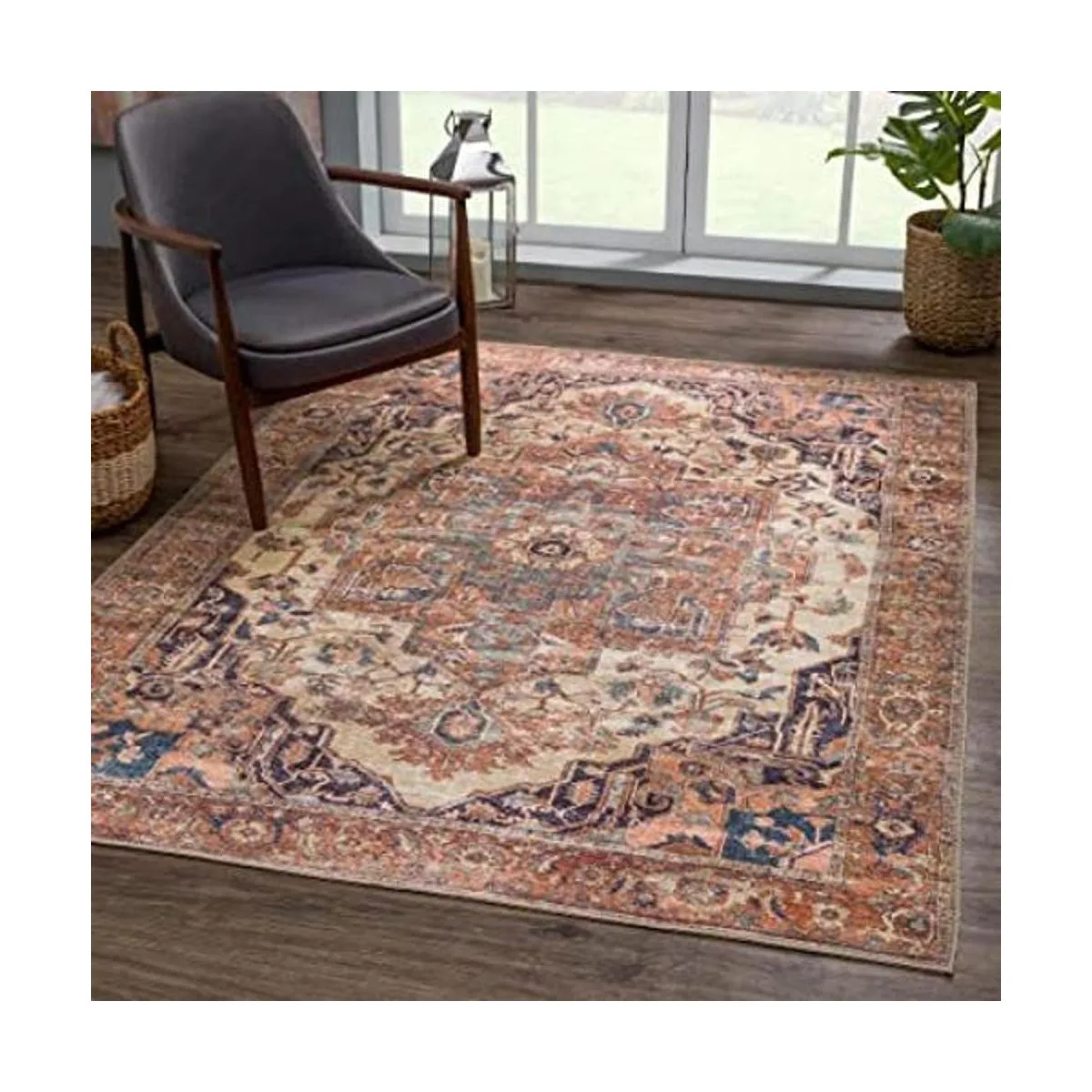 Bloom Rugs Alfombra lavable de 5 x 7 pies color beige y terracota, tapete desgastado para sala de estar, habitación, comedor y cocina