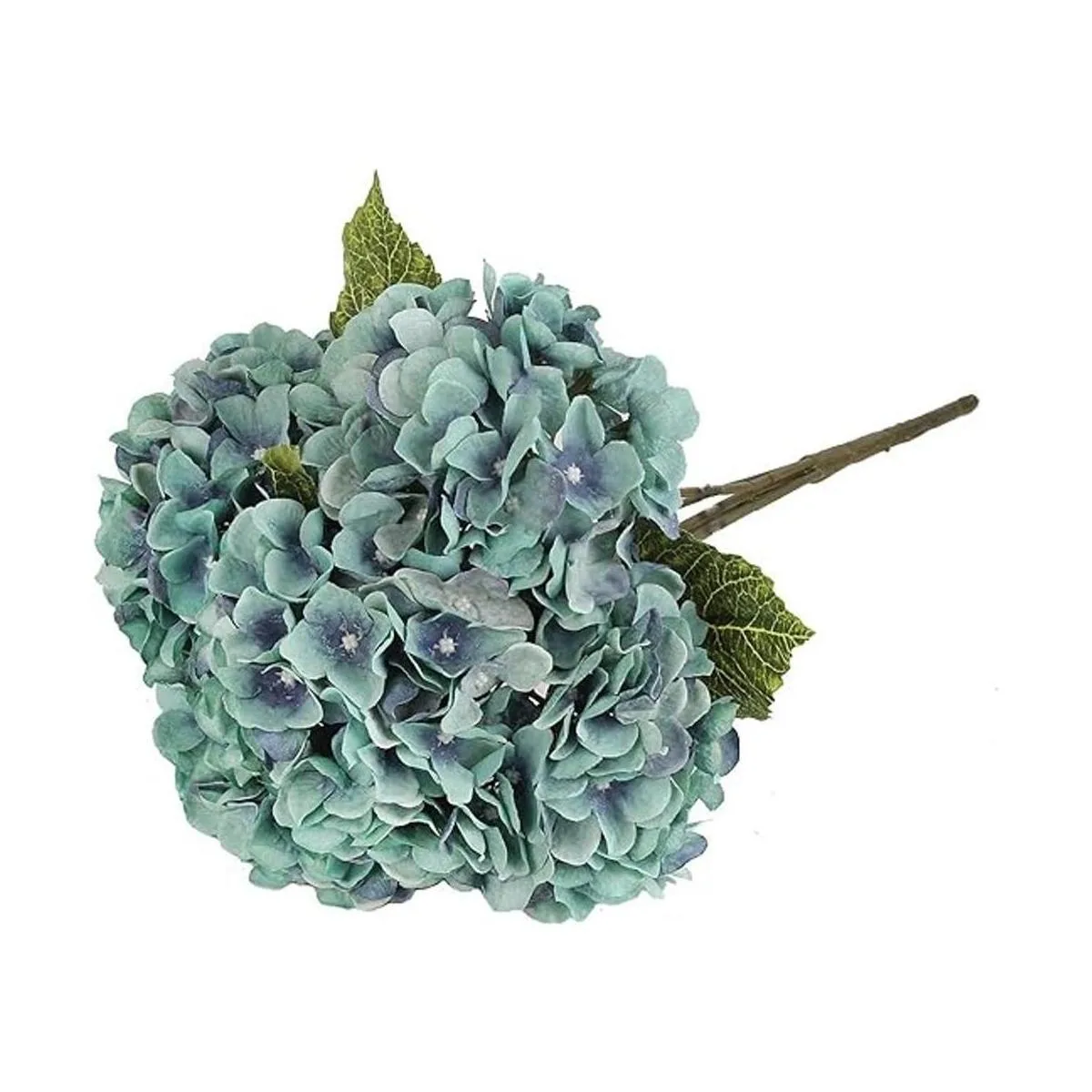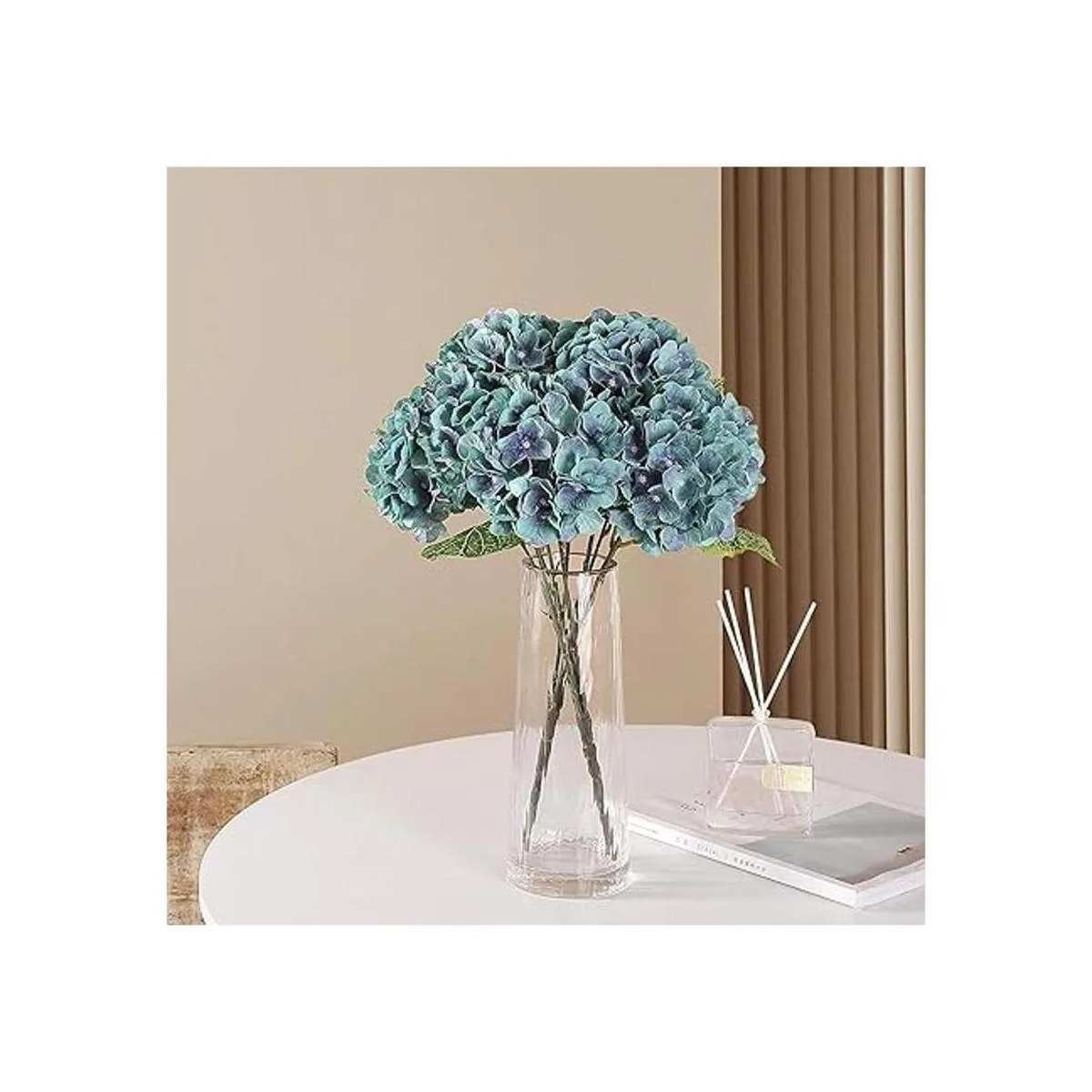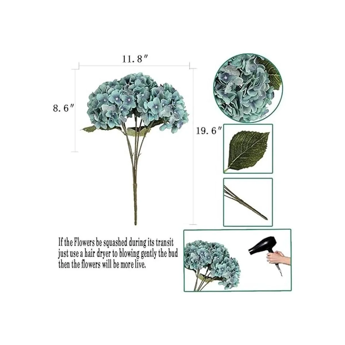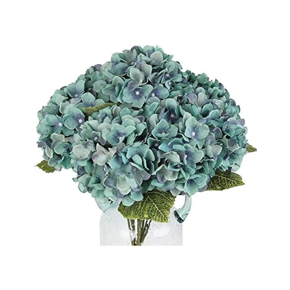 Blooming Paradise Flores falsas artificiales, plantas de seda, arreglos de hortensias de seda, ramos de boda, decoraciones de plástico floral para el hogar, cocina, jardín, fiesta, bar, bricolaje azul ácido, 5 cabezas de flores