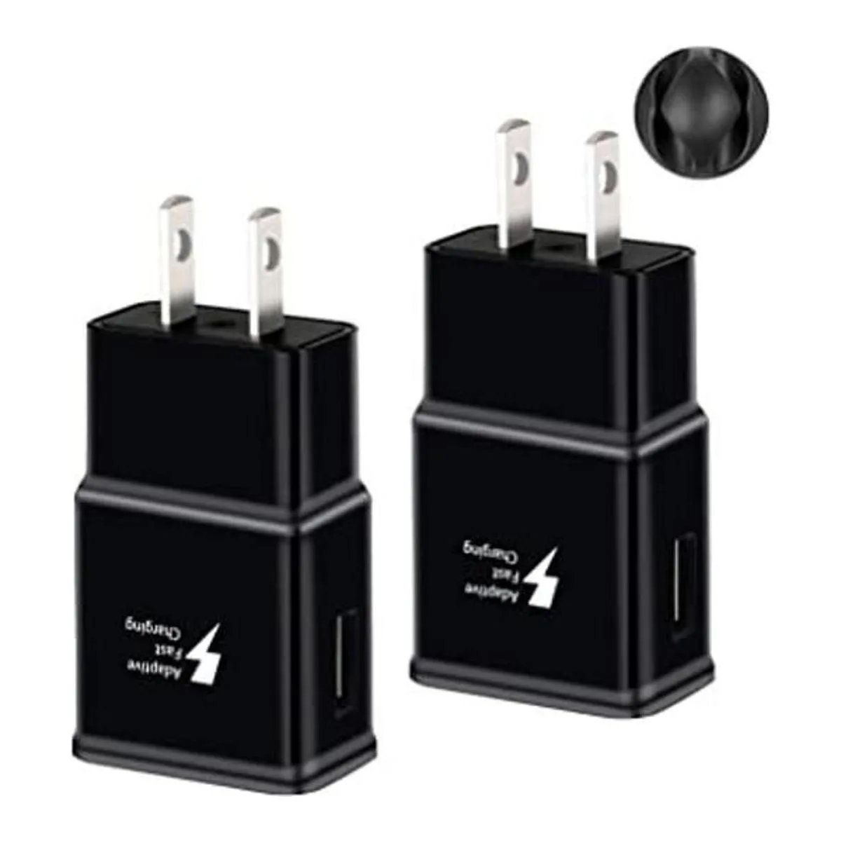 Lo que obtienes: 2 cargadores de pared rápidos negros el cable no está incluido, 1 clip de cable y 24 meses de producto sin preocupaciones y el mejor servicio al cliente.