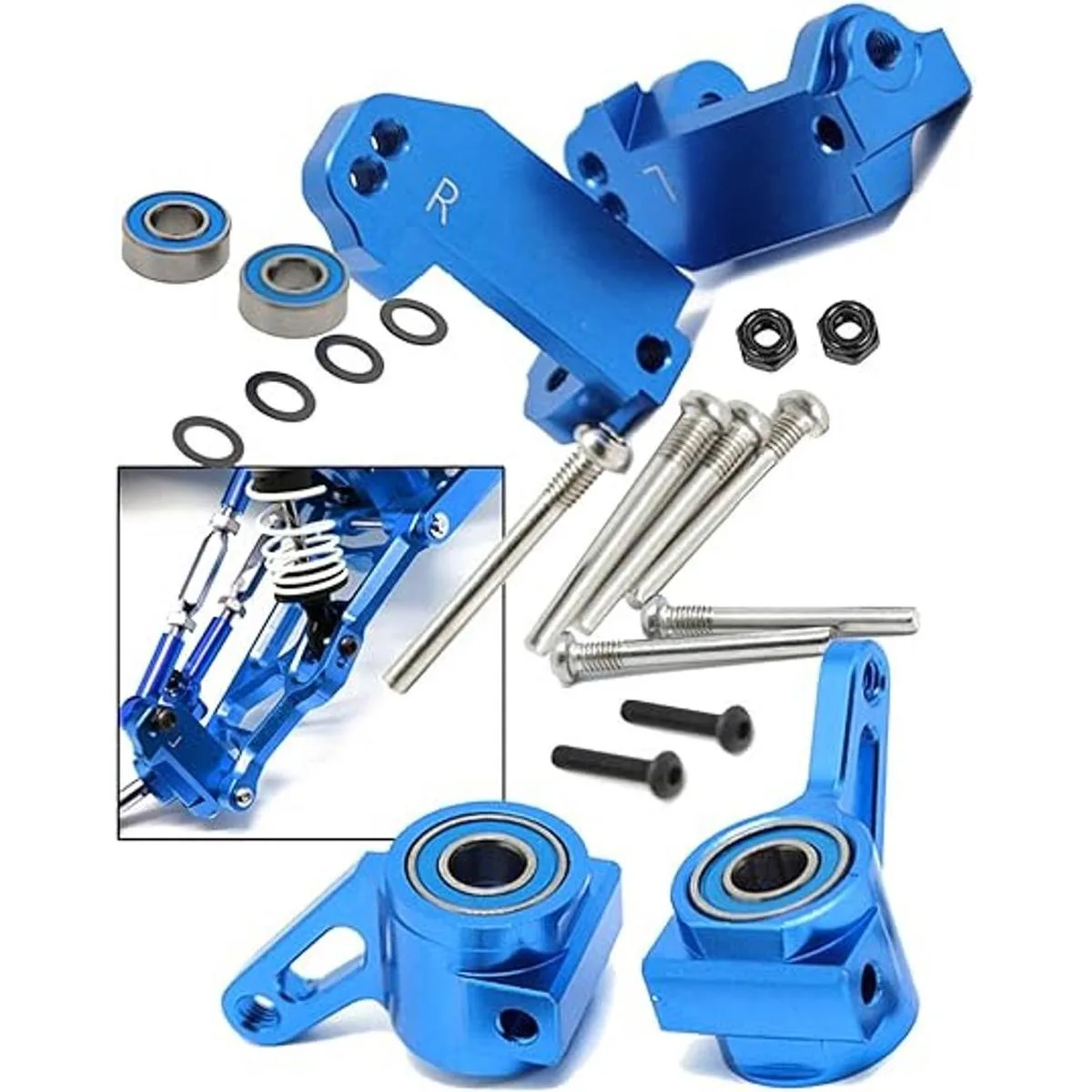 Bloque de rueda delantera de aluminio, kits de bloques de dirección, piezas de actualización para Traxxas Slash 110 2WDStampede 2WDRustler 2WD, ARRCat Hop Ups Upgrades piezas, reemplaza 3632 3736, azul