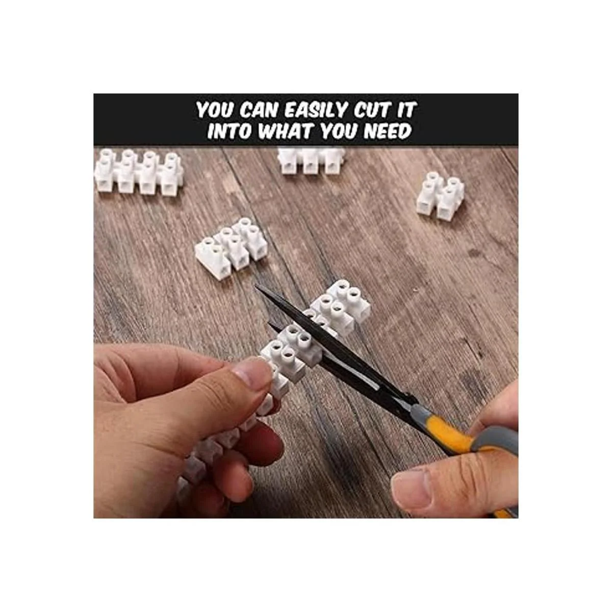 Fácil de instalar: necesitas pelar los cables, e insertarlos en la tira de terminales y apretar los tornillos, sin necesidad de soldadura problemática; además, puedes utilizar tijeras u otras herramientas, cortar el bloque de terminales de tornillo se convierte en piezas pequeñas como necesites
